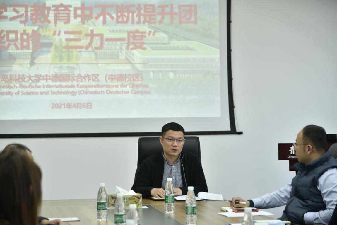 中德校区党总支副书记刘浩以《强“三性”、去“四化”,在党史学习教育中不断提升团学组织的“三力一度”》为主题,从当前团学干部队伍中存在的综合能力良莠不齐、存在“学生官”思想、角色定位不清晰、工作与学习的关系处理不当、学生干部能力培养欠缺、学生干部创新能力缺乏等问题入手,结合党史学习教育,提出三点要求:一是团学组织必须要做到强“三性”、去“四化”,要在工作、学习和活动中时刻注意政治性、先进性和群众性,坚决去除机关化、行政化、贵族化、娱乐化的不良倾向。二是团学组织要坚持“三力一度”的总要求,要以引领力为牵引、以组织力为支撑、以服务力为推动,聚焦主责主业,全面协同发力,提升团学组织在校区建设与发展、学校高质量发展中的贡献度。三是团学干部要不断加强自身的政治素质,完善自身的知识结构,掌握科学的管理方法,明确自身目标,树立持续学习的观念。
