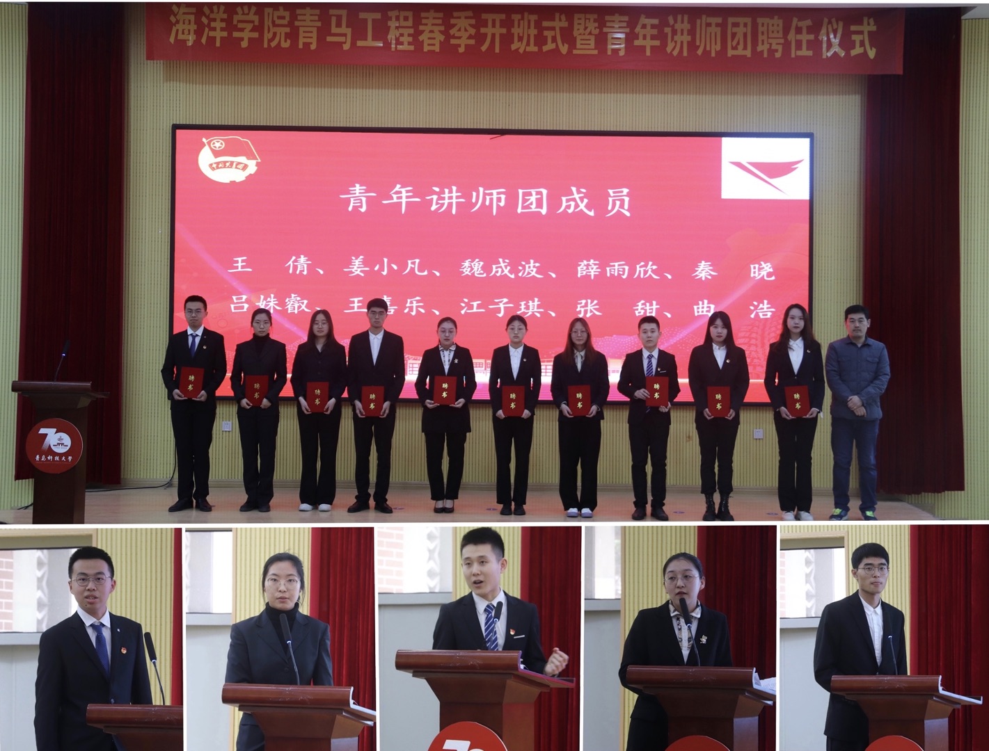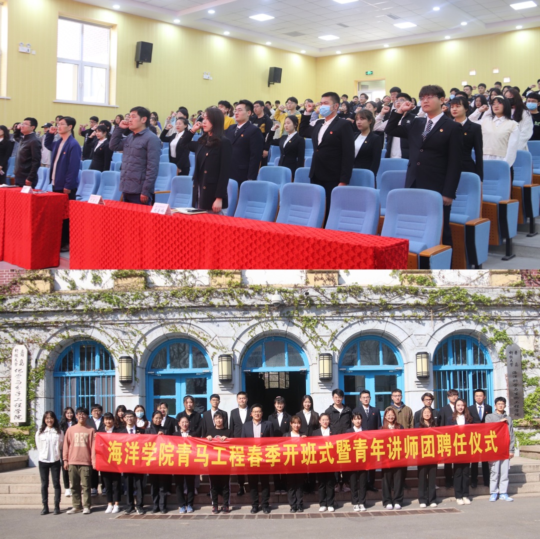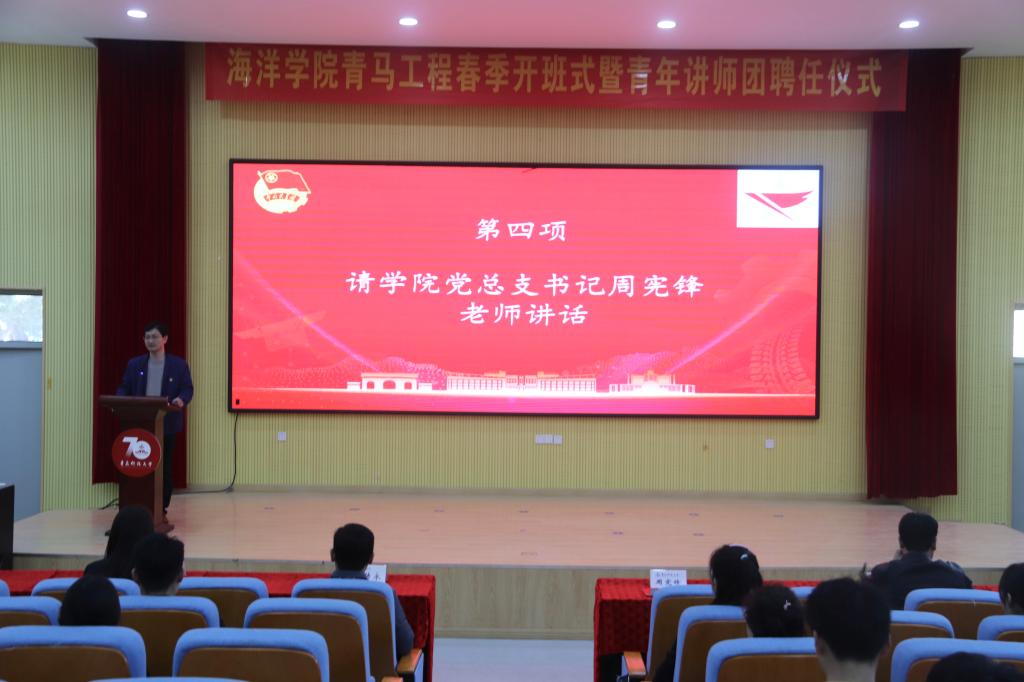 4月6日下午,海洋学院青马工程培训班春季开班式暨青年讲师团聘任仪式在尚舜报告厅举行。海洋学院党总支书记周宪锋、党总支副书记兼副院长臧传永、专兼职辅导员、学生干部参加开班式。会议由海洋学院团委书记李浩主持。