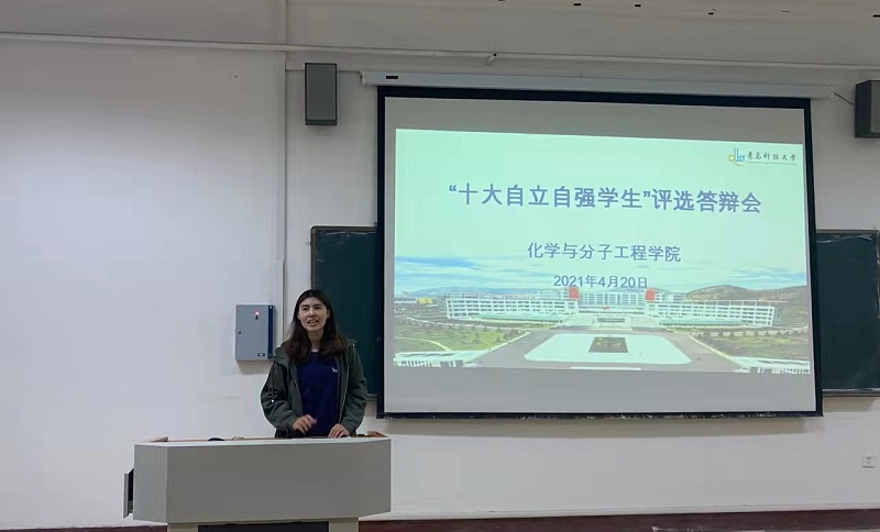 为全面落实立德树人根本任务,宣传德、智、体、美、劳全面发展的家庭经济困难学生先进典型,营造自尊、自信、自立、自强的校园励志文化氛围,切实发挥资助育人功效,4月20日,化学院“十大自立自强学生”评选答辩会在一政243会议室举行。学院评审委员会成员出席会议担任评委,来自各专业14名候选人以及困难生代表100余人参加了此次活动,活动由苗清老师主持。