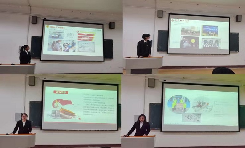 各位候选学生依据抽签顺序依次上台答辩,他们分别从所获资助、学业成绩、学科竞赛、学生工作、公益服务等方面汇报了自己入学以来的成长及变化。答辩现场满满的正能量,各位候选学生向在场师生充分展示了他们的自强不息、奋发向上的先进事迹,同学们都被各位候选人的先进事迹所感染。