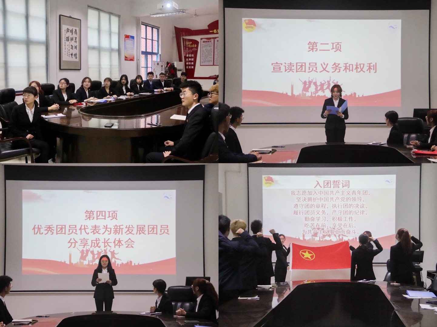 优秀团员代表陈林夕为新发展团员分享成长体会。她号召同学们要树立共产主义远大理想,在投身社会主义建设中,在自己学习生活中不断练就服务青年、服务社会的本领。