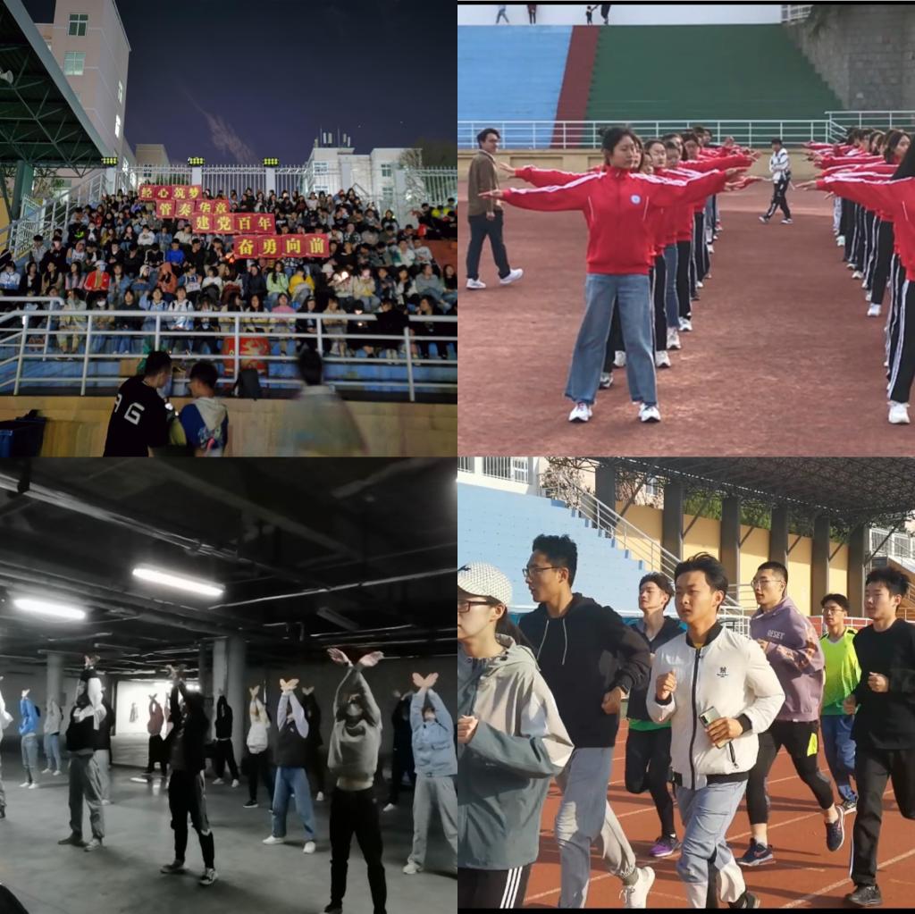 沉淀——潜心备赛勇承重载。经管学院高度重视运动会筹备工作,根据学校运动会总体部署,迅速完成田径队、拔河队、排舞方队、广播操方队的选拔、组队工作,并组织召开全体动员大会,激昂斗志,赋予雄心。在45天集训中,学院分管学生工作副书记、全体辅导员密切关注训练动态、加强人文关爱,通过全程跟训、聘请专业指导教练、制定严密训练计划等,形成了科学有序、一以贯之的全方位指导与服务体系。全体运动会克服天气因素和自身困难,坚持每天训练,地下车库、弘毅广场、田径场都能看到学子刻苦训练的身影,以实际行动阐释了不畏艰难、敢于吃苦、坚韧不拔的经管精神。在运动会入场方案制定及看台观众训练过程中,学院根据实际情况多次调整方案,师生同心、全力以赴,最终呈现了良好的视觉效果、展示了经管学院蓬勃风采与积极向上的精神风貌。