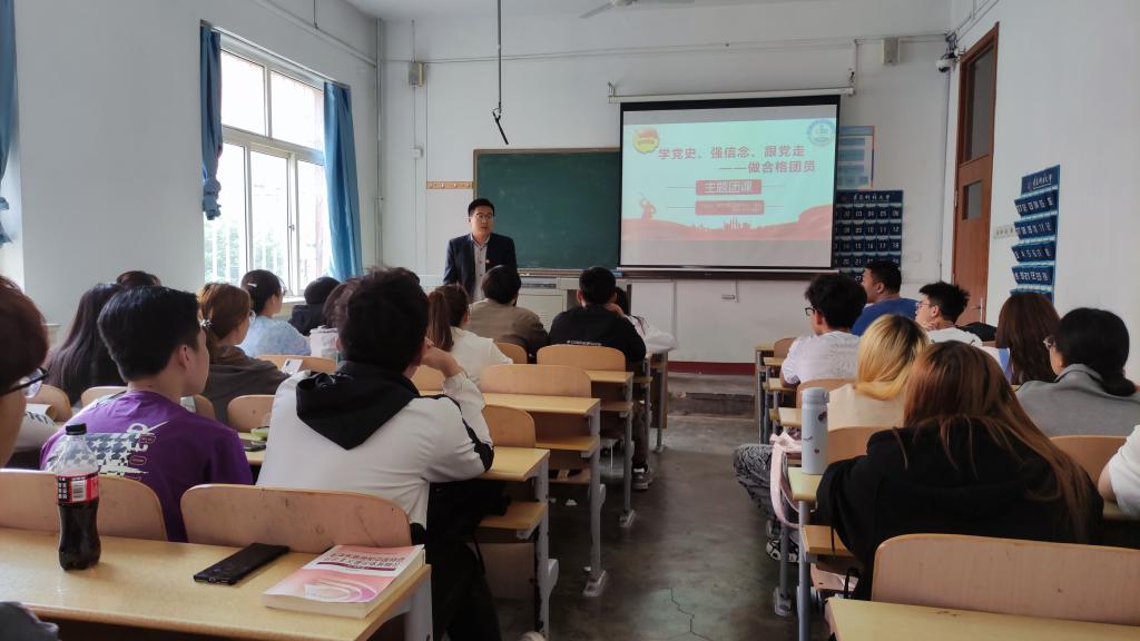 会上,李浩传达了校党委书记马连湘在《感悟思想伟力坚定文化自信——争做德智体美劳全面发展的社会主义合格建设者和可靠接班人》主题思政课的精神。随后,从中国共产党诞生的国内国际背景、中国共产党百年党史的四个历史阶段两方面,对党的百年历史进行了系统讲述。他指出中国共产党的诞生要从国内和国际两个维度去理解把握,从中国近代历史发展的进程看,它是中国近代历史发展的必然产物,是中华民族谋求复兴的历史结果。全体团员青年要从“中国共产党为什么能、马克思主义为什么行、中国特色社会主义为什么好”的角度出发,不忘初心、牢记使命,坚定对马克思主义的信仰,坚定走中国特色社会主义道路的信心,为实现新时代党的历史使命不懈奋斗。