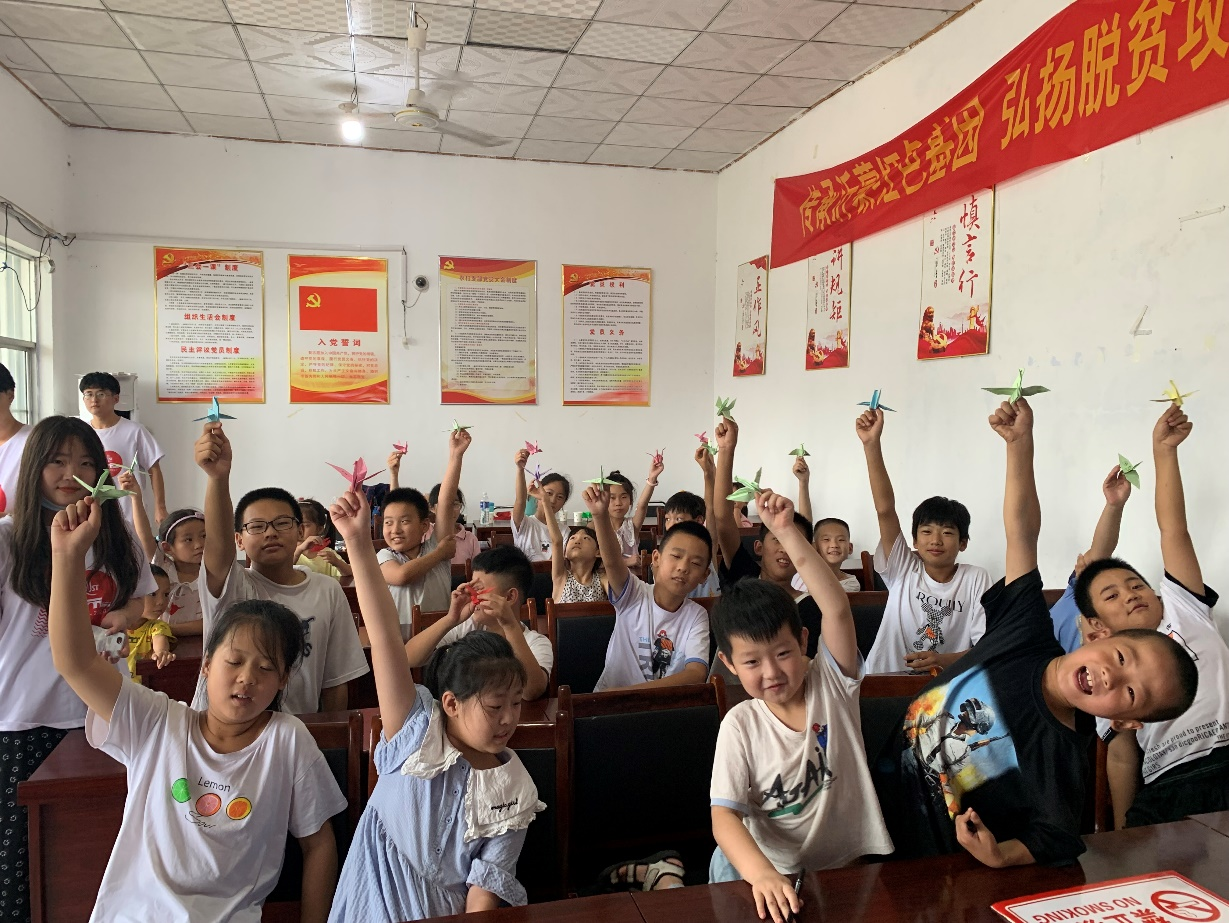 接下来是手工折纸活动,团队队员教小朋友们折千纸鹤,在团队队员的耐心教学和小朋友们的认真学习后,每个同学都折出了让自己满意的千纸鹤,也锻炼了自己的动手能力。