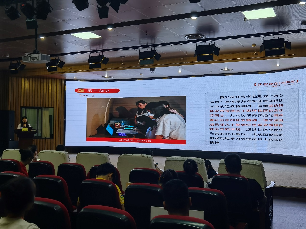 汇报期间,来自各高校的40支实践团队有条不紊,依次上场,在既定时间内阐述自主实践期间的成果,并围绕各自的主题讲述各团队的实践亮点。MILE米乐集团赴延安“初心画坊”宣讲服务实践团成员黄佳莹进行了“礼赞百年党史,宣扬延安故事”的主题汇报,汇报了在延安为期十天取得的阶段新成果。实践团队通过图文结合的方式生动地展现实践的过程,得到评委老师的一致好评。