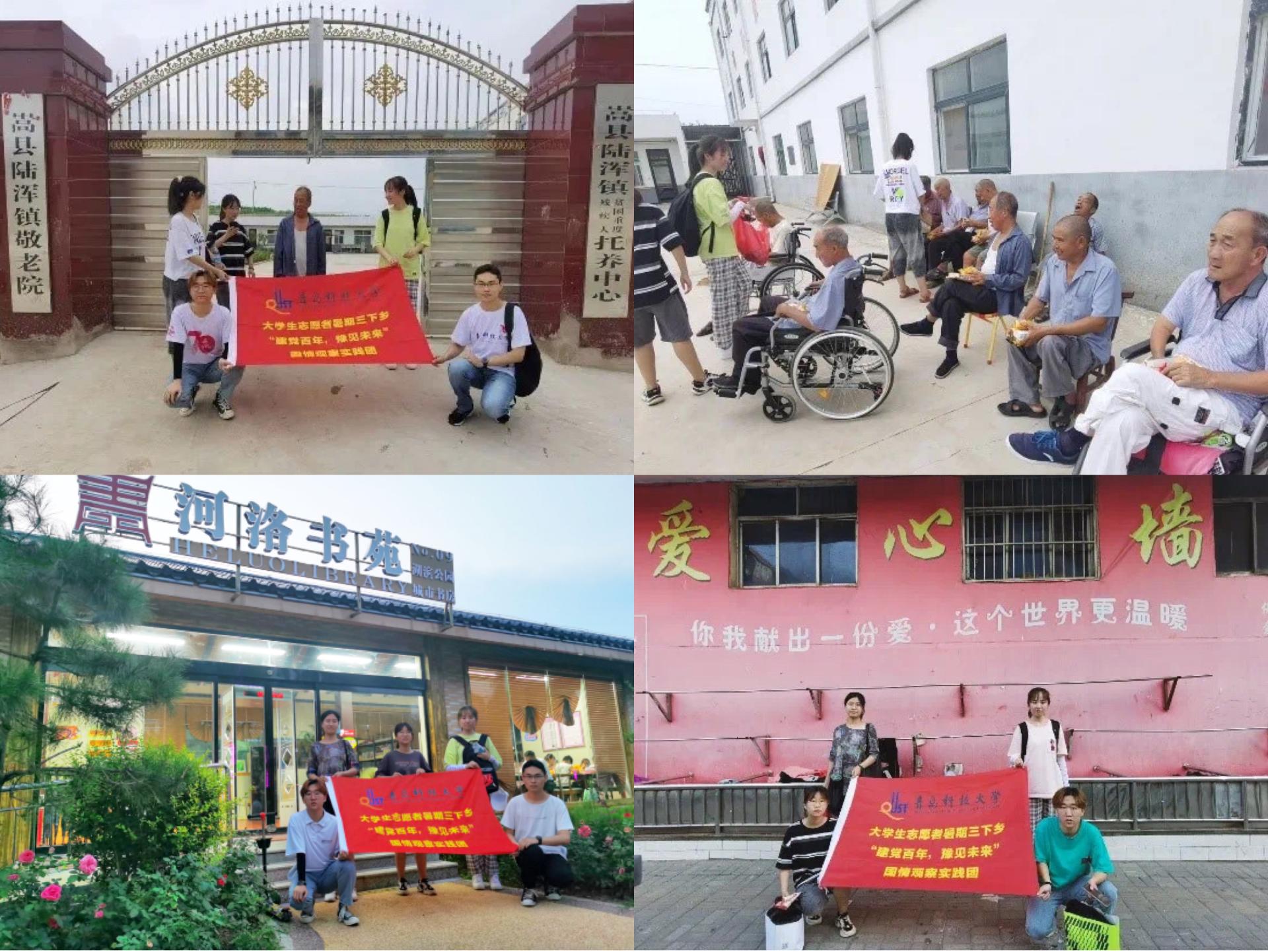 8月1日,实践团成员带着慰问品前往陆浑镇重度贫困残疾人托养中心。热闹的庭院,生机勃勃的瓜果蔬菜,院内乘凉的老人……走进敬老院,映入眼帘的是这样一些场景。在负责人的安排下,我们在庭院中陪老人们聊天,给老人们送上牛奶、面包、鸡蛋等物品,亲切地叫着“爷爷”、“奶奶”,向他们介绍我们是从哪里来。随后,在几位爷爷奶奶的带领下,部分实践团成员前去参观他们居住的地方,并积极打扫环境卫生,帮老人们收拾房屋。最后,我们为部分老人拍摄合影定格当下的温馨、美好,之后将照片冲洗出来由托养中心负责人捎去带给他们。下午,实践团到达洛阳市的城市书房——河洛书苑举行“红色书籍”经典重温读书会,深刻体悟建党百年以来永垂不朽的时代精神。之后,成员们一同前往县城中的“爱心墙”,带去早已准备好的衣物、图书和学习用品,并与有需要的人进行攀谈,了解实际情况,根据不同家庭状况提出合理建议以解决实际问题。爱心墙的目的是唤醒人性的本真与善良,让困难者得到帮助,让爱心在这里传递,让社会正能量彰显于嵩州大地。