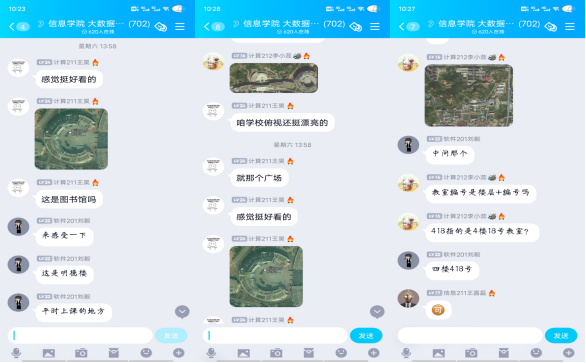 为了能够使新生提前了解校园布局,方便今后的学习和生活,学院开展线上参观校园活动。学长学姐通过在新生群内发布学校布局图,向新生们详细介绍校园各处建筑,比如:教学楼、食堂、浴室、快递收发点等处的位置,使同学们可以通过线上提前了解校园,避免新生初入学时出现迷路等问题。此外,学院利用官方微信、QQ平台推送食堂美食攻略,让萌新们对于科大美食的热爱和憧憬又多了一分。舌尖上的科大味,心底里的科大情。线上参观校园的方式,让新生们对于开学后的生活又增添了些许期待。