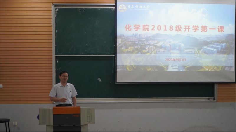 为引导化学院2018级学生更好地了解就业形势,认清升学趋势,树立正确的择业就业观,提升就业质量,进而以更加饱满的精神状态投入到新学期生活中,9月3日,化学院2018级“开学第一课”暨惟真惟德大讲堂在第二教学楼101教室召开。化学院党委书记王德宝、副院长胡志强、党委副书记杨小明、辅导员闵繁盛、王森出席本次活动。
