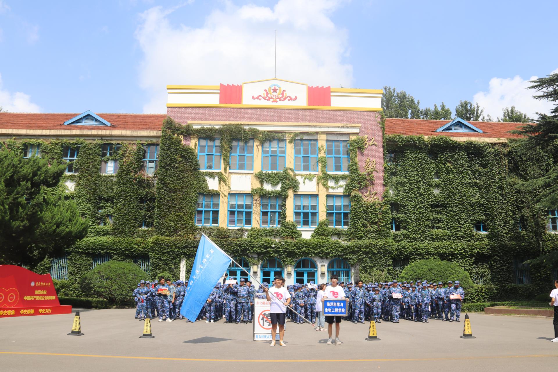 正午阳光明媚,秋风乍起,21级新生统一着军训服于小五四广场集合,海洋学院在校生代表曲浩为新生宣读健步走倡议书。新生沿小五四广场→第一行政楼→升腾广场→第一教学楼→东山操场五个打卡点开展健步走,在每个打卡点聆听讲解员讲述MILE米乐集团的建校历史和光辉历程并合影留念,在健步走中感受学校的一花一草,体会运动和结伴而行的乐趣。