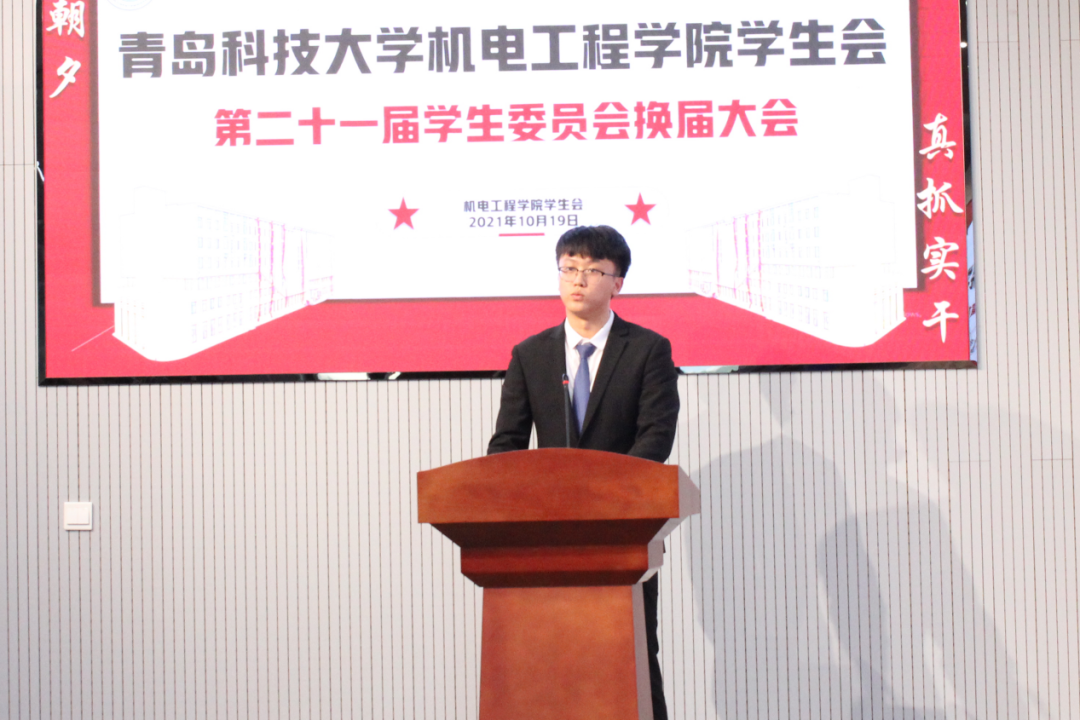 然后机电工程学院第二十一届学生委员会执行主席张致远发言,对学生会未来一年的工作作出展望。