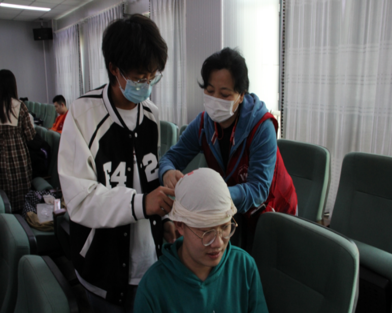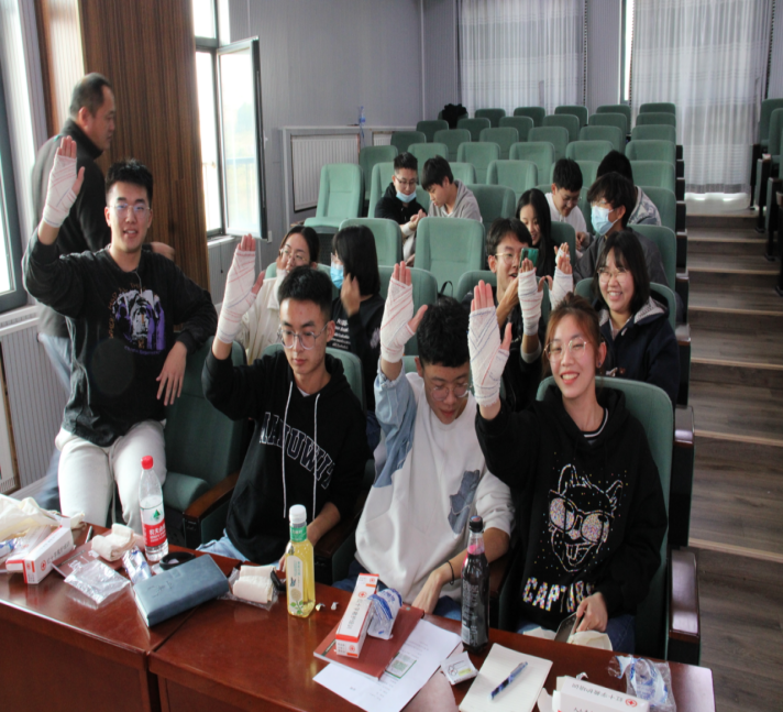 本次培训在机电楼530会议室举行,培训流程分为理论学习、实际操作与考试三个部分。在理论学习阶段,老师详细讲解了应急处置“四个能力”和应急救护“四个技能”等意外事件处置急救知识,并结合具体实例,使同学们理解了掌握应急救援知识的必要性。在实际操作阶段,培训老师示范了“外伤包扎”、“心肺复苏”等紧急意外处置程序、处理技能,并让参训学员分组轮流动手操作,在亲身体验的同时加深印象,参训学员的救护技能得到进一步提高。考试阶段,采取理论试卷考试和实际操作考试相结合的方式进行,参训学员的知识技能得到及时巩固。