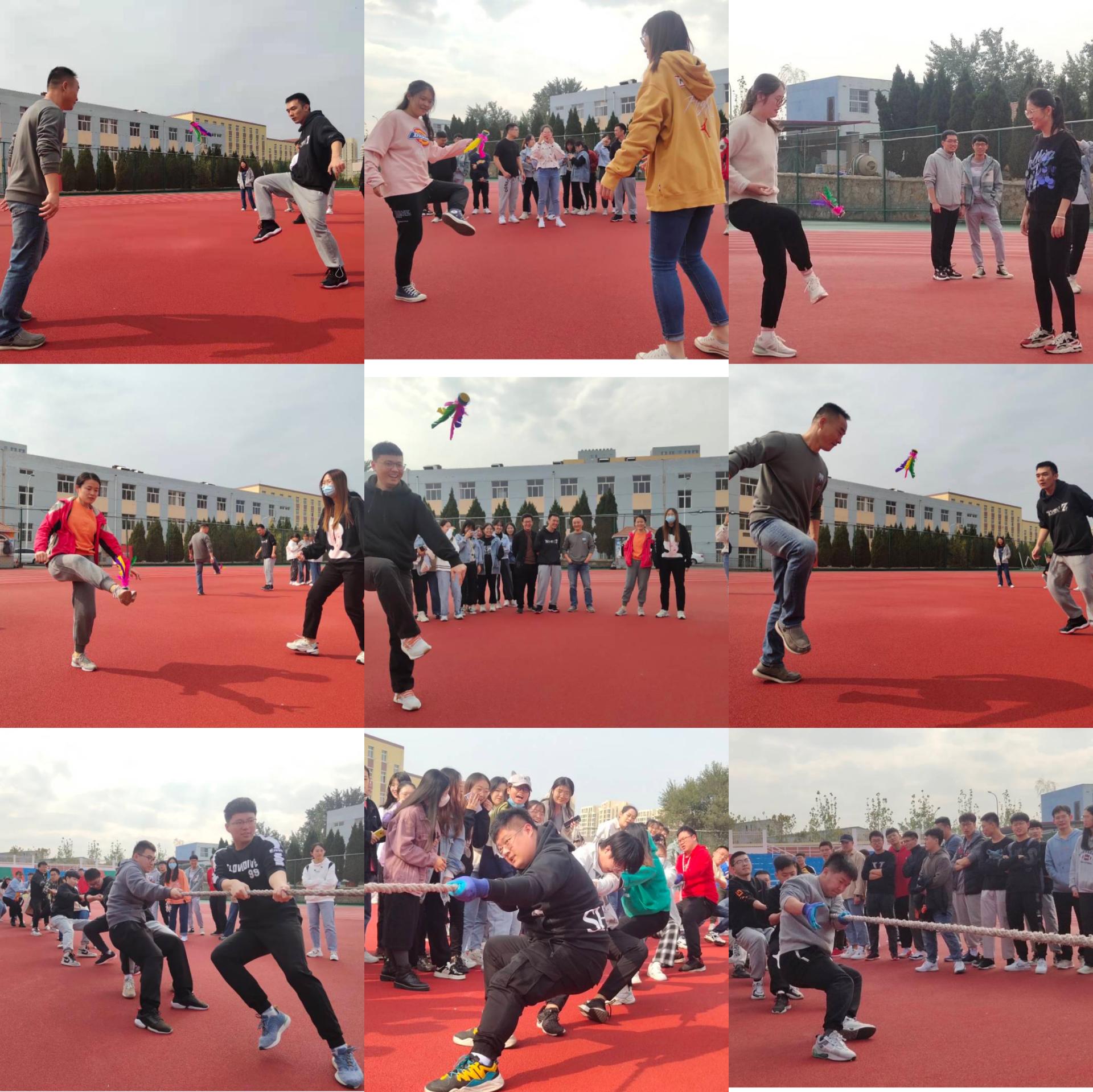 为营造“爱体育,兴科大”的氛围、深入落实学校体育综合改革实施方案、培育体育强国理念的重要举措,提高同学们的运动积极性和身体免疫力,做好秋冬季节传染病防控,化学院研究生于2021年10月24日上午10点在四方校区东山操场举行“逐梦青春,团结奋进”主题趣味运动会——拔河、踢毽子,20、21级研究生及研究生导师参加了本次趣味运动会。