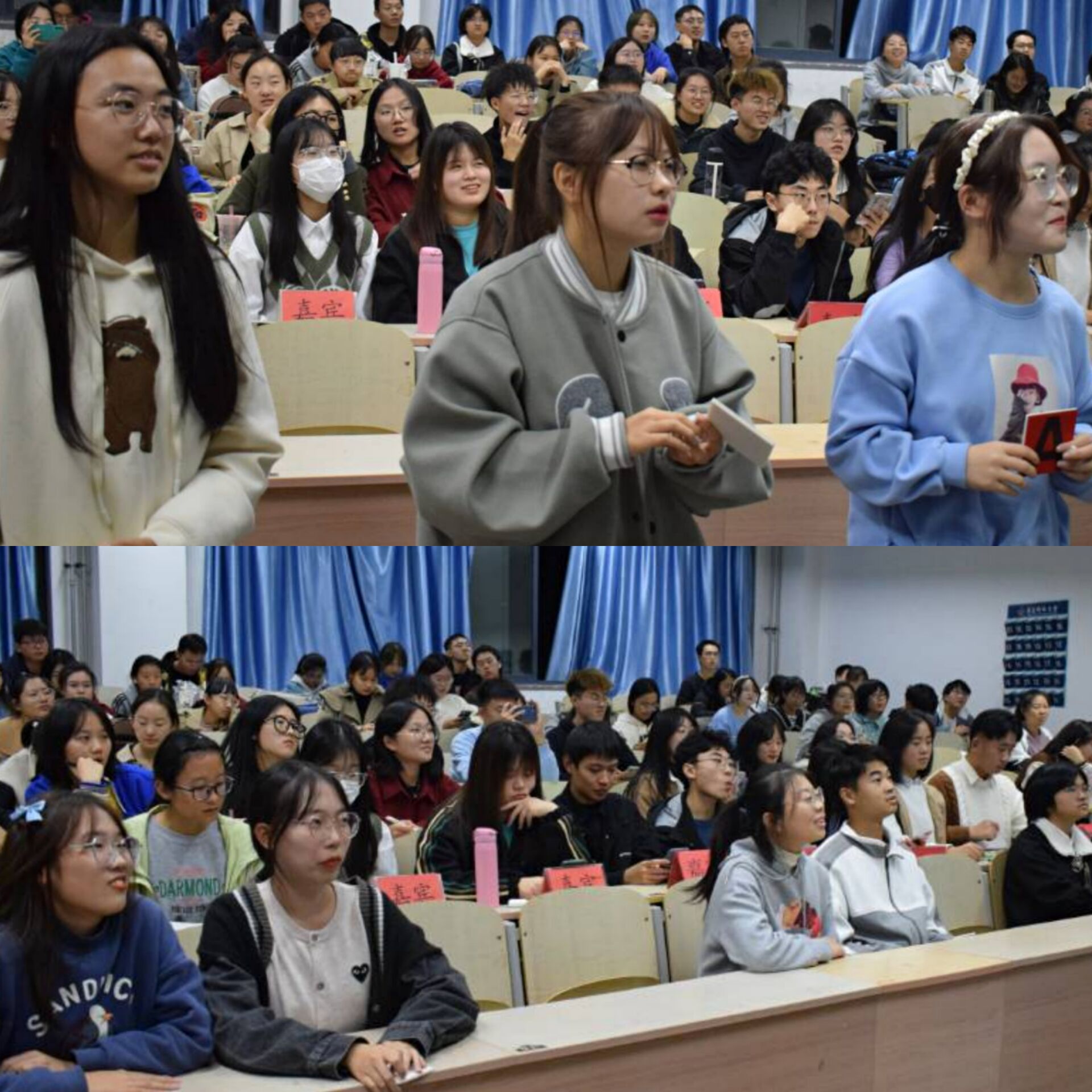 此次诗词大会受到同学们广泛关注,题目丰富,活动新颖,同学们踊跃报名参与。本次比赛共两大回合,第一回合为小组赛。在第一节抢答赛中,选手们个个火眼金睛,能够快速、准确的找出诗句中的错误。在第二节抢答赛中,选手们两两搭档,互相配合,积极争夺回答问题的机会。第二回合为个人赛——连连看。第一回合晋级的九位选手神采奕奕,面对打乱的诗句沉着冷静,稳定发挥。第二节决胜战中,三位选手充分运用自己的知识自信答题、一展风采。同学们在积极参与比赛的过程中,不仅感受到了比赛的激烈,更体会到了诗词的魅力。