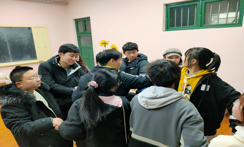 心有千千结,以解不宜结。应化中美211团支部组织“心有千千结,以解不宜结”趣味游戏,由全体成员依次报数从一到五,分为五组,每组分别上场进行游戏,每组成员首先手拉手站好,大家记清自己的确切位置,然后由一位同学进行打乱,打乱后大家再次牵手,在手不松开的情况下,还原为刚开始的样子。本项游戏在锻炼大家思维快速运转解难题的同时增进友谊,使心中千结开解。