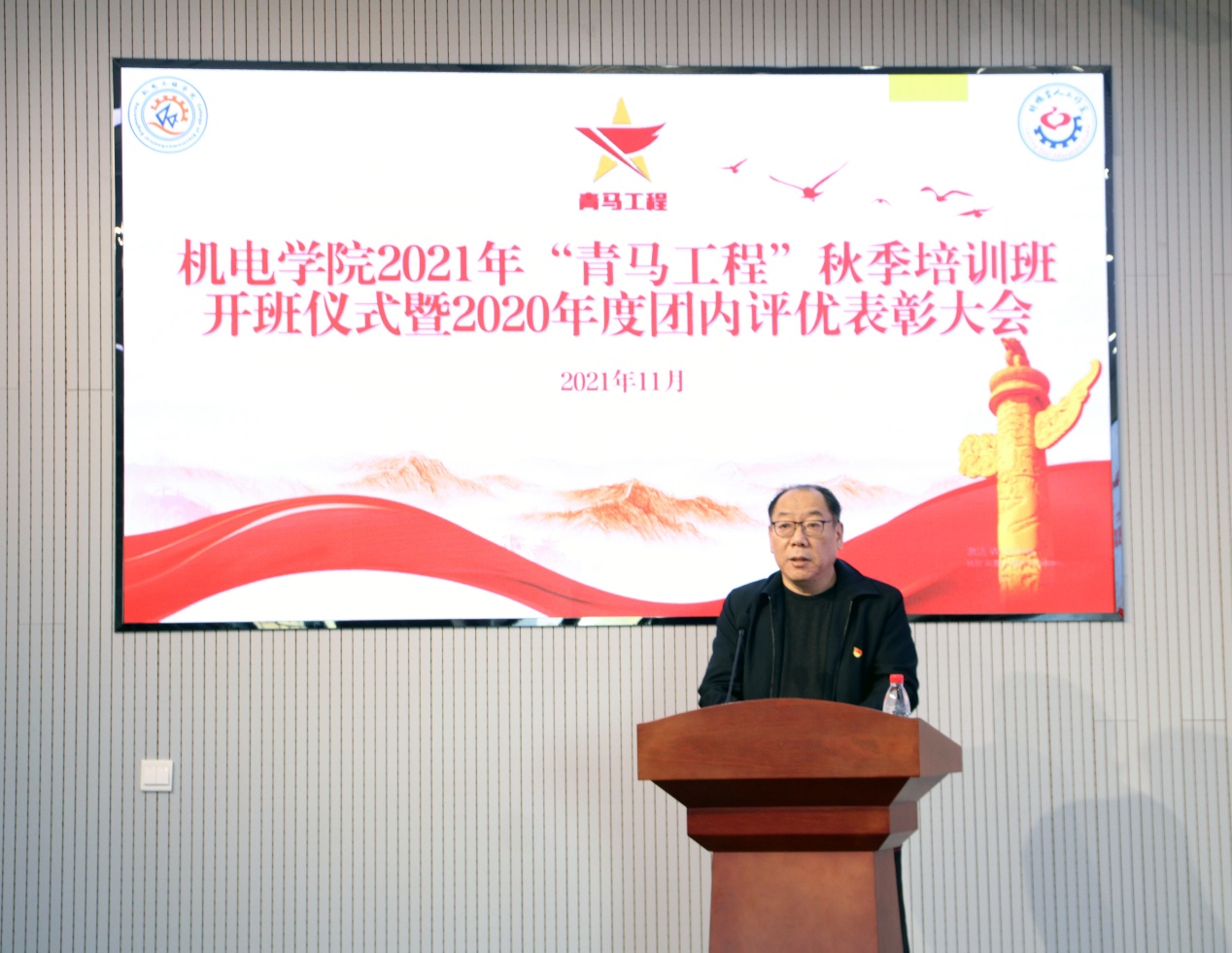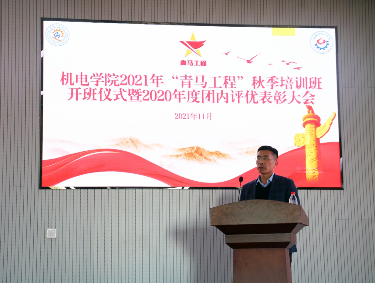 会上,肖强宣读2021年机电工程学院“青马工程”秋季培训班实施方案及青年讲师团名单。