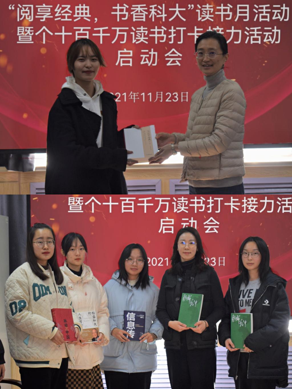 11月23日下午,外国语学院举行“阅享经典 书香科大”读书月活动暨个十百千万读书打卡接力活动启动仪式。参加此次读书启动会的有外国语学院党委副书记兼副院长王晓娜、学工办副主任兼团委副书记王雨昕、院学生会代表和学生代表。启动仪式由团委老师张湘钧主持。