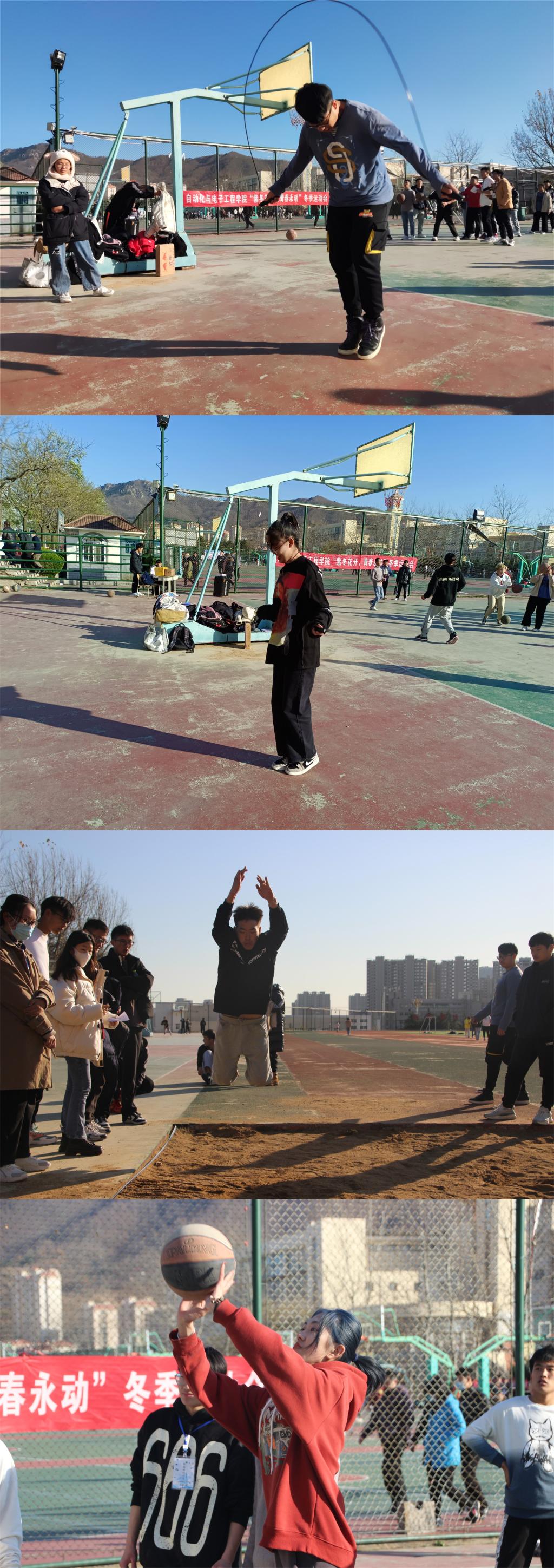 前半场赛事已完成拔河比赛及各项径赛项目的角逐,后半场赛事主要包括跳绳、跳远、投篮等项目。随着裁判一声哨响,各项比赛激烈展开:参赛选手的跳绳飞快地甩起,犹如条条彩龙在飞舞;跳远运动员仿佛飞燕般在沙坑上轻快地跃起,随后稳稳落地,跳出傲人成绩;灌篮高手们膝盖略弯,凝视前方,双腿猛然发力,高高弹起,将球精准送入篮筐,赢得现场阵阵掌声和欢呼。