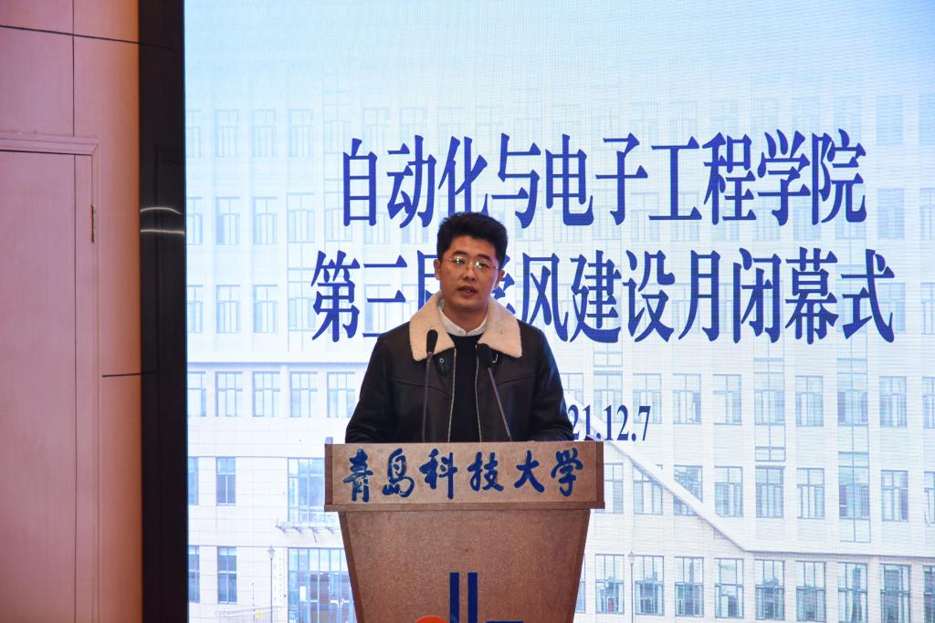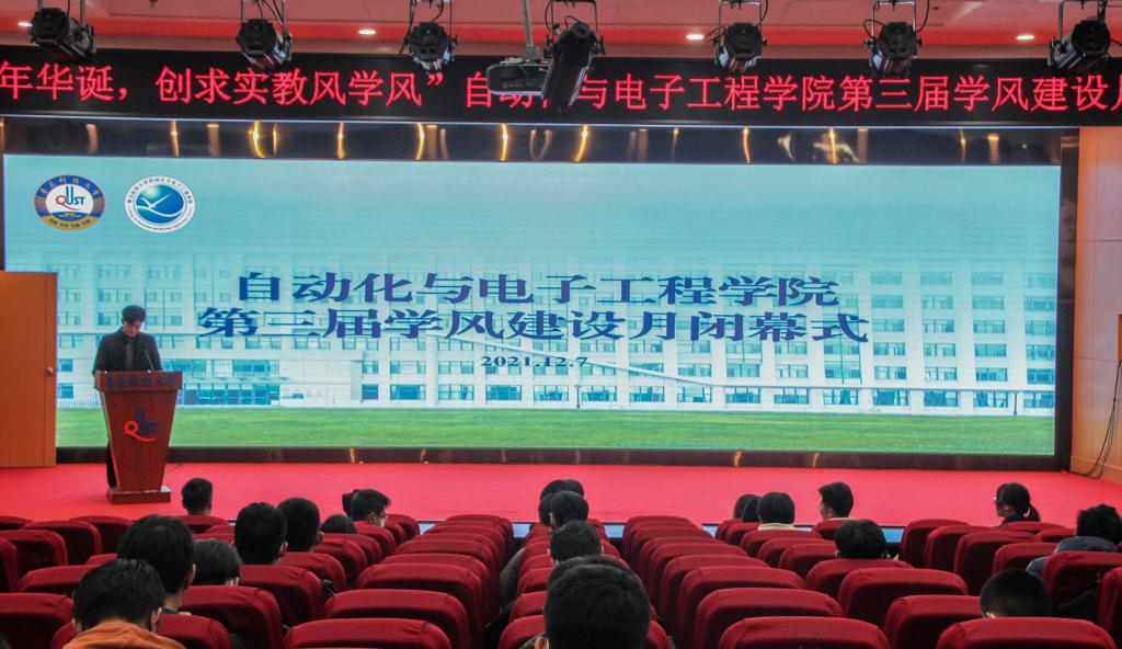 为加强我院学生综合素质建设,塑造自化笃实向上教风学风,推进学院教学与学生工作长效协同发展,自动化与电子工程学院于12月7日下午在崂山校区英科报告厅举办第三届学风建设月闭幕式。学院党委副书记兼副院长马寒,团委书记兼学工办主任郭蒙蒙,团委副书记兼学工办副主任于彬、郝雄文,全体团委老师以及21级学生代表出席本次活动。