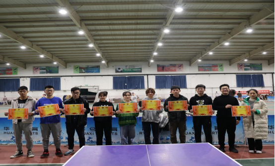 活动伊始,首先杨小明书记以运动精神为主题进行爱国教育宣讲,并由研会代表带领大家学习“一二·九运动”背景与深远意义相关知识。在之后的乒乓球比赛过程中,杨书记与同学们进行了轻松愉快的友谊赛,一招一式,尽显“国球”魅力。在正式比赛过程中,各位参赛选手们不断变换步式,采用直拍、横拍、提拉、大力扣杀等多种战术,精准进攻,巧妙防守,精彩场面层出不穷。经过几个小时的角逐,最终研213刘鹏飞、研211许雪娇、研212段宇昊和研213顾艳丽分别获得男子单打、女子单打以及混合双打的冠军。