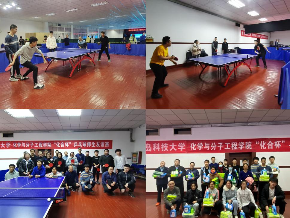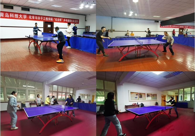 为丰富化学院师生的业余文化生活,响应学校“爱体育·兴科大”的号召,达到相互交流,促进感情,锻炼身体,增强体质的目的,激发广大师生参与体育活动的热情,化学院于12月7日下午在西礼堂二楼乒乓球活动室举办“化合杯”乒乓球师生友谊赛,比赛展示了化学院师生“惟真惟德”风貌,不仅切磋了球技,更增进了师生情谊。
