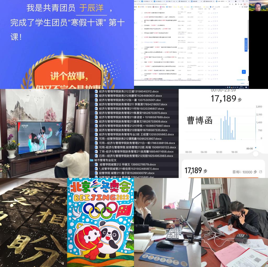 经管学院持续构建“五育并举”协同育人模式,助力学生实现黄金期“弯道超车”,强化德育提升素养,组织全体学生参与“传承红色基因、争做时代新人”红色征文活动并积极投稿学校;开展“我的读书日记”读书活动,并分阶段引导学生做好读书笔记、撰写读书报告;组织学生积极开展“寒假十课”学习并跟踪进度,以主题团课的形式组织全体学生学习共青团十八届六中全会精神,组织全体学生观看冬奥会开幕式,并积极参与“迎冬奥,我来赛”网络知识竞赛,激发冬奥会等时政热点的思想政治教育功能。强化智育巩固学业,引导全体学生聚焦自身主责主业,成立专业内部学习互助组开展课程补习,利用假期时间及时查漏补缺;围绕科创竞赛全面铺开,组织全体学生积极参与科创赛事,并就学生组队、选题、指导、ppt制作、参赛经验分享及心理辅导等开展“一条龙”服务,助力学生培育科创思维。强化体育夯基固本,组织学子积极响应学校“科大与你一起ying冬奥·年”活动,利用微信运动、运动器械等开展体育运动,确保每日步数 6000 步以上、运动里程 2Km 以上、运动时长超过 40 分钟,以实际行动积极响应学校“爱体育·兴科大”号召。强化美育涵养情感,充分利用春节、冬奥会契机,组织学生积极参与“MILE米乐集团首届“我和我的家乡”短视频/摄影大赛”“一起ying冬奥·年”活动,鼓励学子将情感付诸笔端与镜头,用书法、绘画、vlog视频作品等表达对春节及北京冬奥会的祝福。强化劳育淬炼意志,组织全体学生积极参与寒假社会实践,积极发挥各年级学生干部、党员骨干的先锋模范和桥梁纽带作用,围绕“青鸟计划”、“一起云支教 共同迎冬奥”专项活动等实践开展全程指导,引导学子在实践锻炼中磨练意志、增长才干。