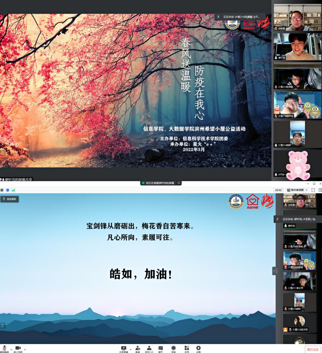 新冠肺炎疫情伴随着“倒春寒”再度袭来,本轮防控形势严峻复杂,信息学院“希望小屋”受助儿童所在地也受到影响。为切实发挥共青团员力量,推动“我为青年办实事”落到实处,信息学院计算机214、微电子201团支部结合近期时事开展“春风送温暖,防疫在我心”系列线上帮扶活动,旨在关心关注被帮扶儿童的思想动态和心理状况,普及疫情防控小常识,丰富课余生活,推动“小屋焕新”取得实质性进展。