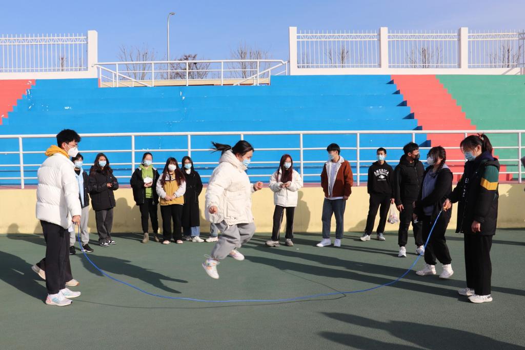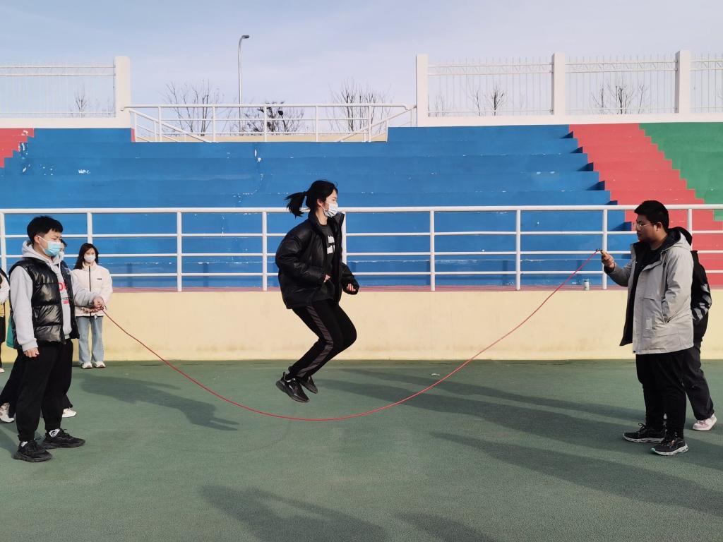 团结一股绳,凝聚大合力。跳大绳活动如火如荼的展开,各组摇绳选手与跳绳选手积极配合,速度与节奏逐渐默契化,同学们用轻快的身姿,跳出阳光与健康,跳出拥抱美好明天的希望。