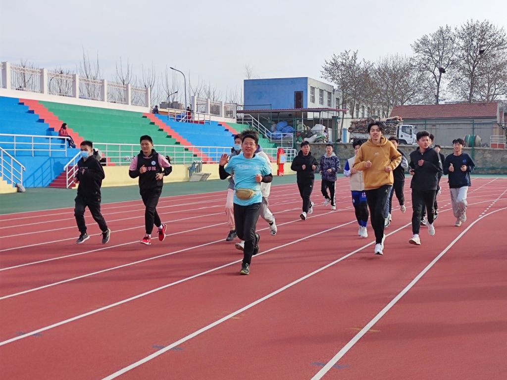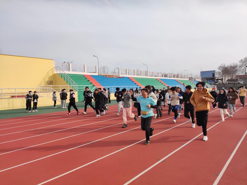 元气健康跑,抗疫加速度。田径场上,贾可好老师作为领跑,与同学们一起进行慢跑运动,同学们队伍整齐、节奏统一,脸上洋溢着灿烂的笑容,充分彰显出昂扬向上的精神面貌。