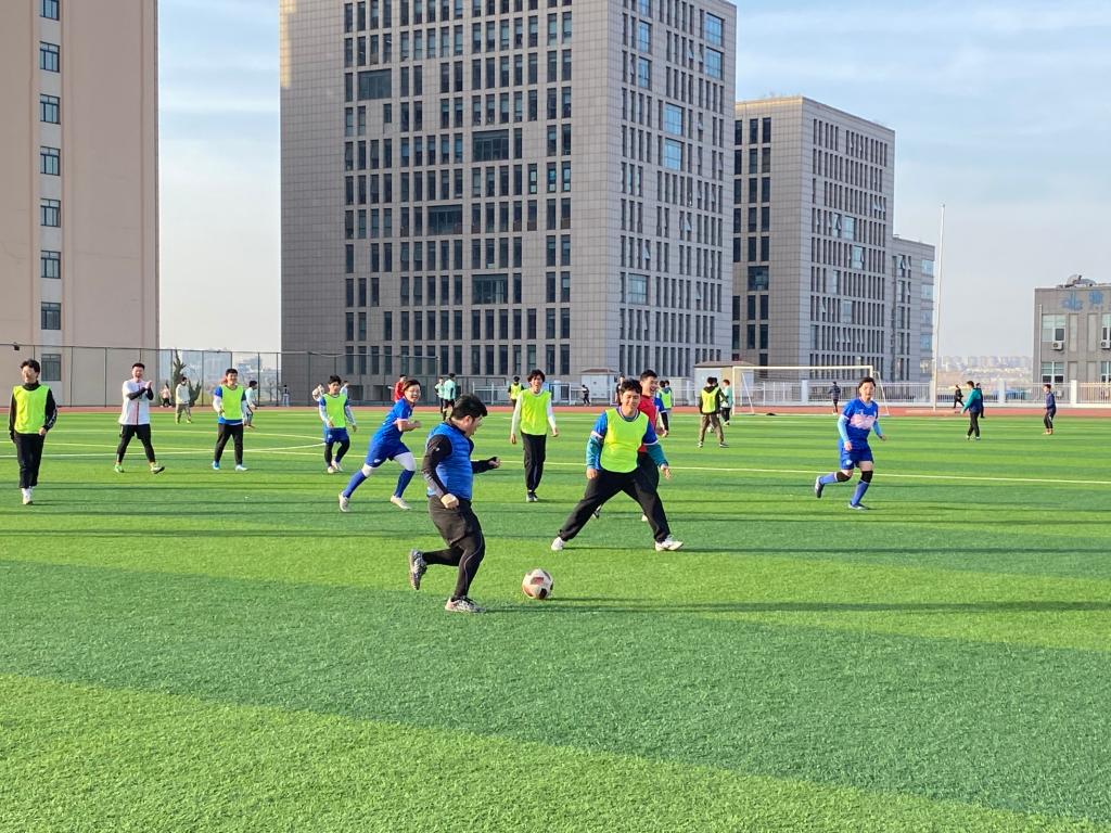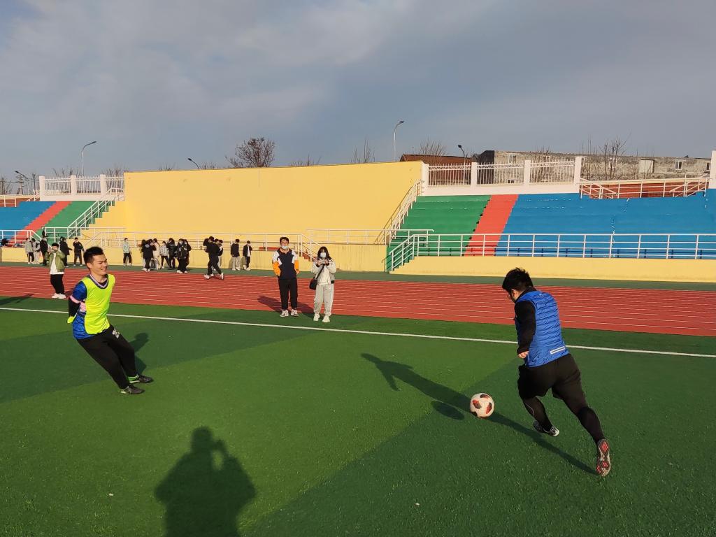 足球展风采,同心力更坚。绿茵场上,钟硕老师带领的足球活动激烈进行,双方球员以饱满的热情对待此次活动,展示出无限的青春风采。