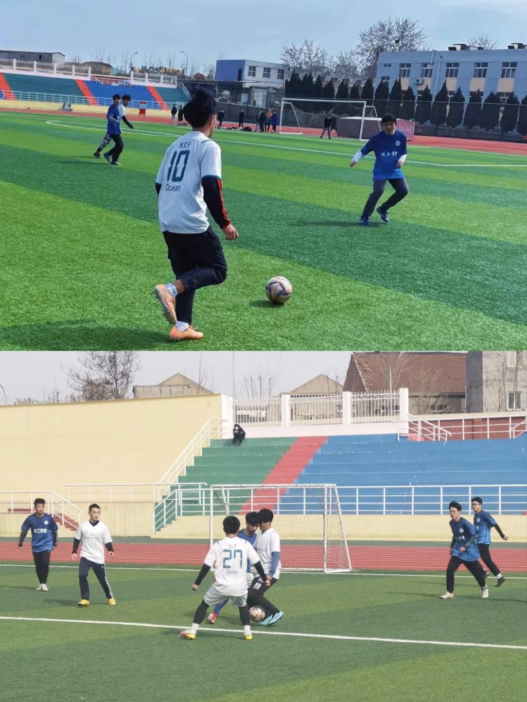 青春恣意张扬,激情绽放球场。海洋学院与化工学院进行足球友谊赛,球员们在球场上肆意奔跑展现运动激情,观众们在看台上心潮澎湃、呐喊助威,随着哨声的吹响,比赛最终在一片欢呼声中圆满结束。比赛是技巧与耐力的较量,也是青春与足球的碰撞,在激烈刺激的比赛中释放青春朝气,增强身体素质。