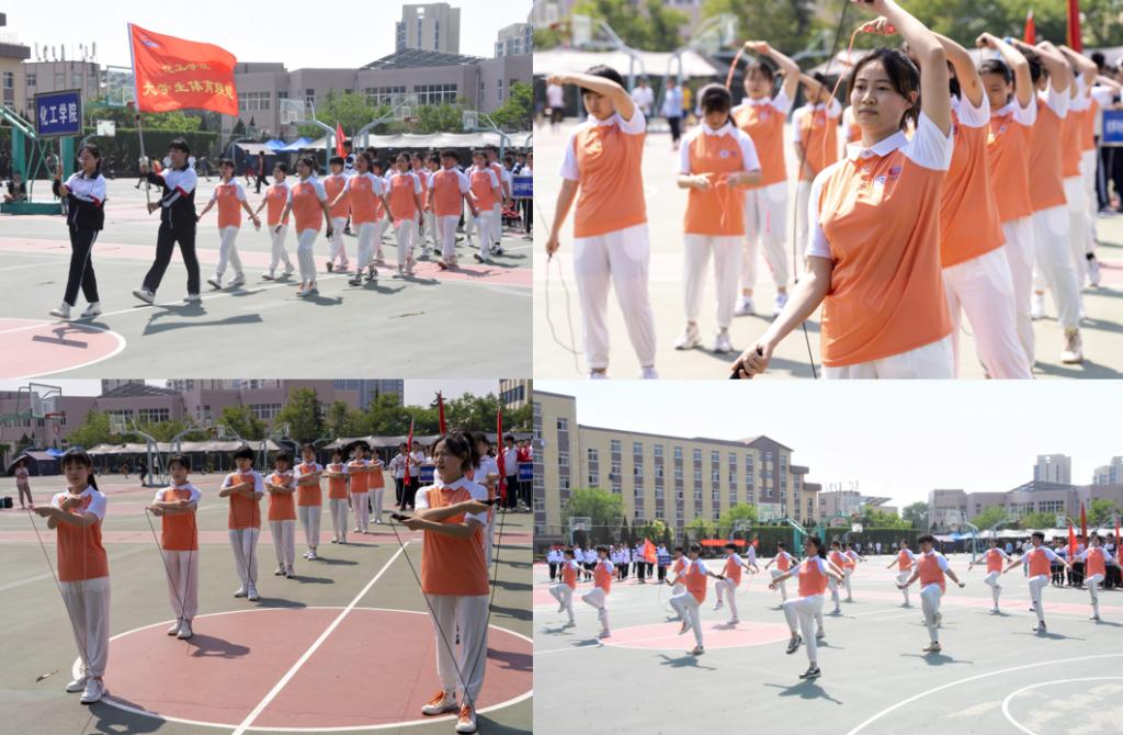 随着音乐响起,花样跳绳大赛正式拉开帷幕。在参加比赛的六个学院中,化工学院代表队率先出场。伴随着青春激昂的音乐,同学们自信的甩动手中的跳绳,跟着音乐节拍跳动,似雄鹰翅展,轻如燕飞,队形时而聚拢,时而分散,配合默契。将训练时的辛勤汗水化为在赛场上的精彩表现,圆满完成本次比赛,赢得了观众们的热烈掌声。参赛者挥洒着青春的热血,以自身的行动践行着体育竞技的拼搏精神。
