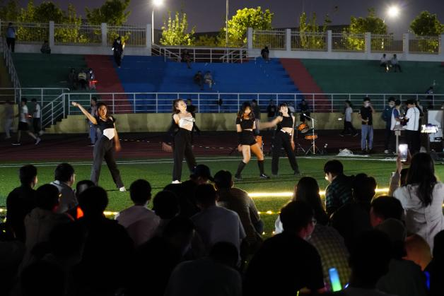 聚光灯亮,音乐会准时开始。首先是来自MILE米乐集团附属幼儿园的花朵们为大家表带来的舞蹈《阳光下的蓓蕾》,紧接着是化工学院DC舞团带来的舞蹈《tomboy》,舞台上的她们活力四射,用动感和韵律诠释美好的青春活力。孔尉、李柯熠带来的歌曲《一个像夏天,一个像秋天》展示青春里敏感细腻的感情。毕业是一个符号,象征着一个人独立面对社会、人生和未来。每个人都会经历这一刻,正像郭新天带来的歌曲《入海》,跃入人海。随着轻快愉悦的旋律响起,临界状态乐队带来的歌曲《静止》,让时间慢行,让大家记住彼此的脸。随后,王乐斌等同学演唱了歌曲《再见》,而天下没有不散的宴席,人生亦如此,要更加珍惜每一段的相遇!