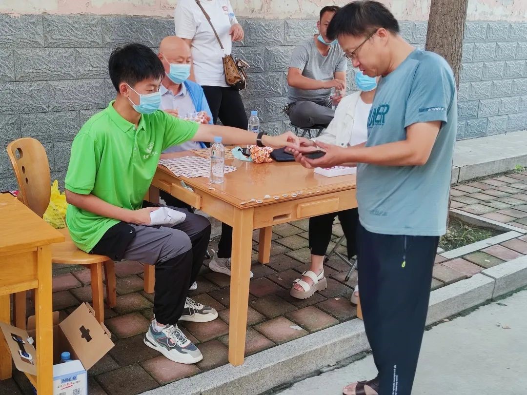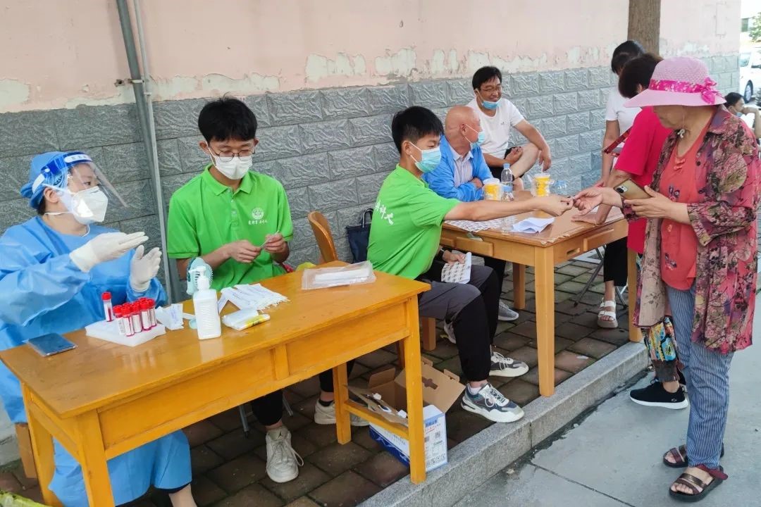 肩负责任甘奉献,满腔热情勇担当。志愿服务是社会文明进步的重要标志,青年志愿者是其中最活跃、最突出的先锋力量。实践团队抵达首日,在与西坦社区工作人员尹晓菲、衣新坤的交流沟通中了解到14日是社区开展全员核酸检测的日子,便主动请缨加入到核酸检测志愿者的队伍中来,光荣获得此次理论宣讲之行的“额外任务”。