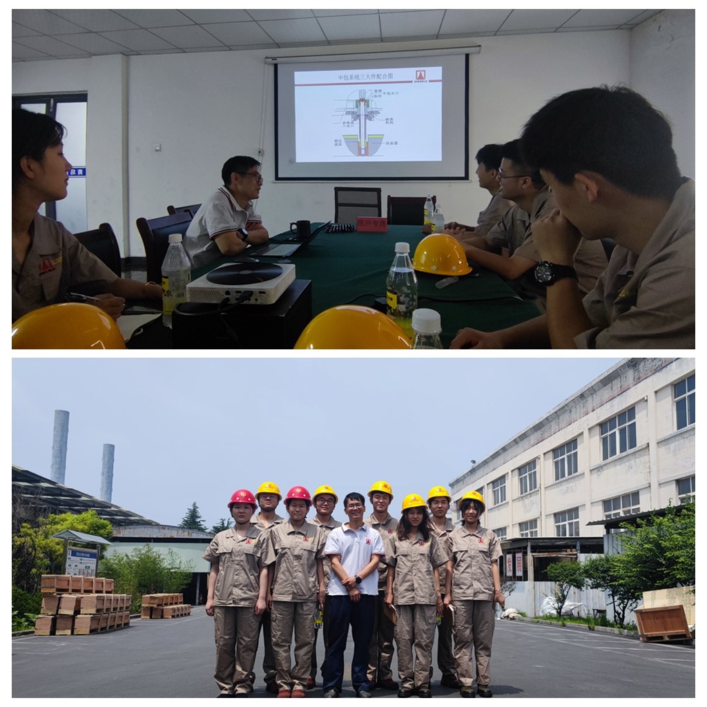 在生产一线开展实习实践的环节中,青岛正望新材料股份有限公司铝碳厂厂长邓荣辉首先为队员进行炼钢、三大件生产、生产过程和产品应用的讲解。理论学习完毕后,实践团成员在邓荣辉的带领下进入生产车间。邓荣辉按三大件生产流程带队员们逐一进行参观和讲解,详细解释了各环节的原理,让队员们学习的理论知识充分与实践相结合,通过实际操作,帮助实践团成员们充分了解企业的生产流程与工艺监测,找准技术难点、明确攻克方向。