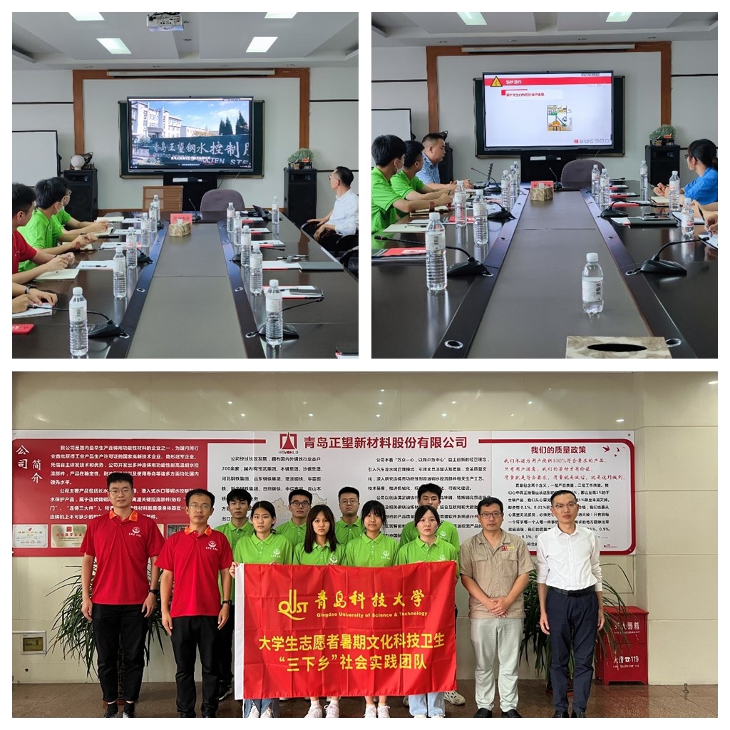 7月15日,学校党委常委、副校长丁林一行到青岛正望新材料股份有限公司看望实践团成员,鼓励实践团的同学们在实践中读书学习、健康成长、创新创造、艰辛奋斗,在暑期“三下乡”的深刻实践中经风雨、做贡献、长才干、受教育,并与即墨团区委、青岛正望新材料股份有限公司开展校地企三方产学研共建交流。