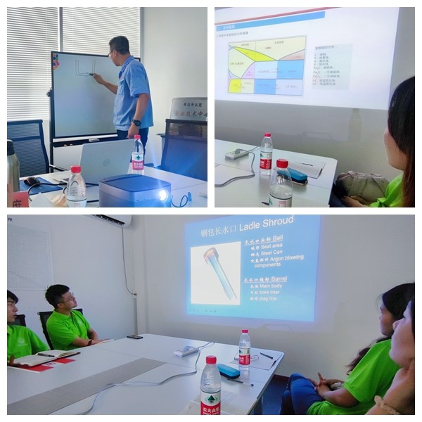 在理论学习环节,“智慧材料”社会实践团师生在青岛正望新材料股份有限公司就公司的产品研发和技术特色开展进一步的理论知识学习。青岛正望新材料股份有限公司总经理赵海峰、市场服务部部长王小军、高级金相工程师刘中华分别为队员们讲述碳纳米管、连铸功能耐火材料、金相组织识别等理论知识内容,为实践团成员做好专业理论准备,增强对产品研发所需的专业知识的认知,为后续的实习实践打好理论基础。