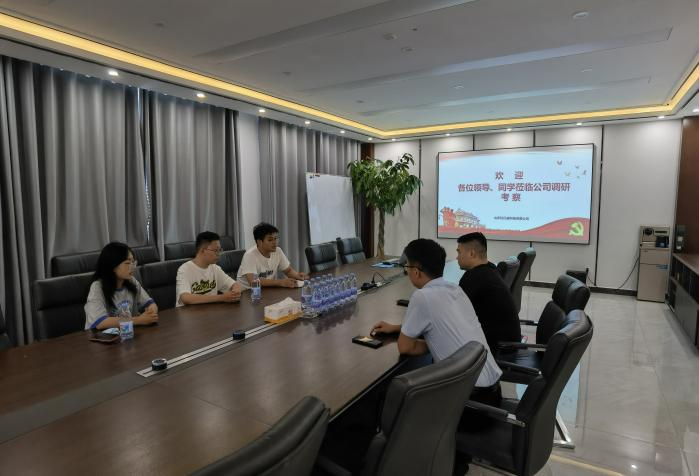调研初始,山东比亿威科技有限公司总经理田文泰对实践团队一行的到来表示热烈欢迎,并带领学院师生深入企业生产线参观。随后,双方就校企合作、产学研融合等方面进行座谈交流。田文泰详细介绍了公司当前基本情况与未来发展设想。曹梦龙则就学院在校企合作方面的技术、人才资源优势等进行介绍,并根据实地调研情况,从技术科研的角度为企业部分现存发展问题“问诊开方”,双方在座谈中初步达成合作意向。
