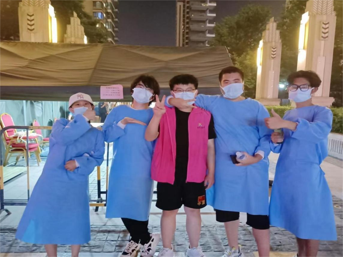 随后的几天,志愿者们进入了万达·中央公馆小区进行核酸检测志愿者的队列。他们有的进行电脑数据录入,有的维持秩序,有的帮助老人注册条形码。从早上九点工作到晚上八点,在简陋的棚子中,穿着闷热的防护服,即便衣服拧出了水,也未曾有过一句怨言。“那么热的天,真是辛苦你们了!”“谢谢你小伙子,如果不是你,我没有条形码真不知道该怎么办了!”一位老人在接受志愿者帮助后在现场发出感慨。社区负责人也真心感叹:“多亏了你们这群青年,有你们真好!”这些简短却又饱含深情的语言像是一股暖流,流入了志愿者们的心里。