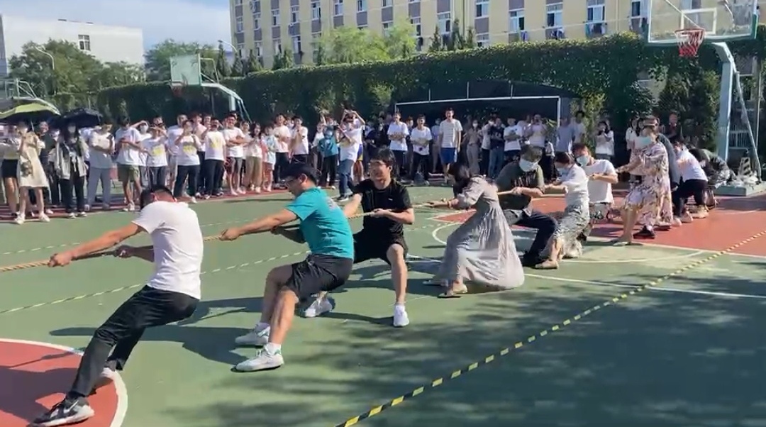 师生拔河、绑腿跑、夹乒乓球接力、师生篮球赛,一场场别开生面的比赛项目相继开展,各参赛队拼搏进取,团结协作,运动场上充满了欢声笑语。通过活动,老师和学生亲密互动,拉近距离,加深了解,度过了一个充满意义的教师节。