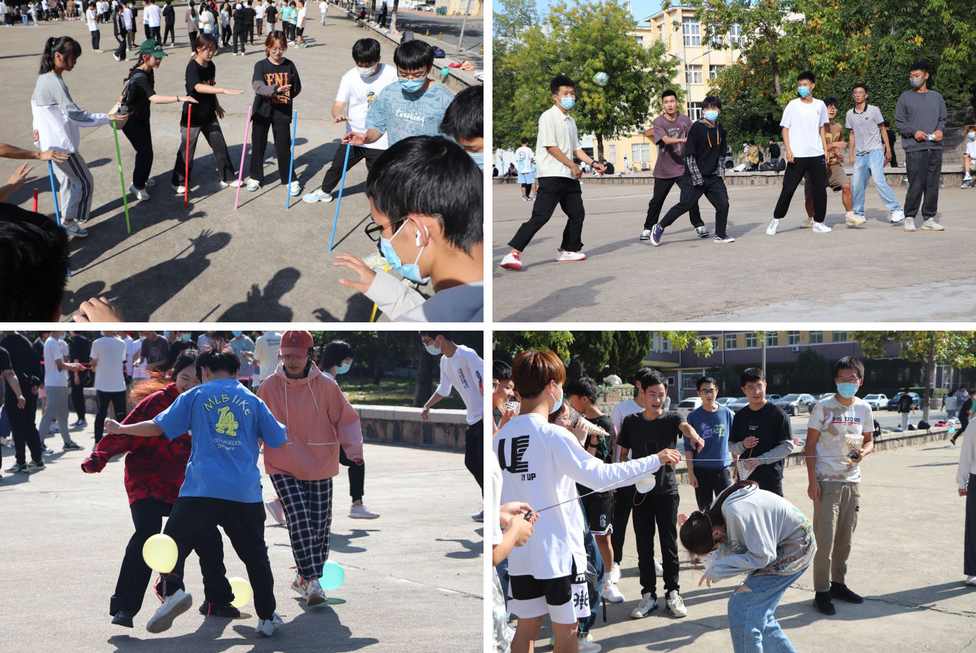 本次活动项目多样,全体大一新生以班级为单位参与活动。本次活动项目共有不倒森林、扔沙包、谁是队长、三角帽大作战、同心击鼓、轨道传球、井字棋等七项内容。