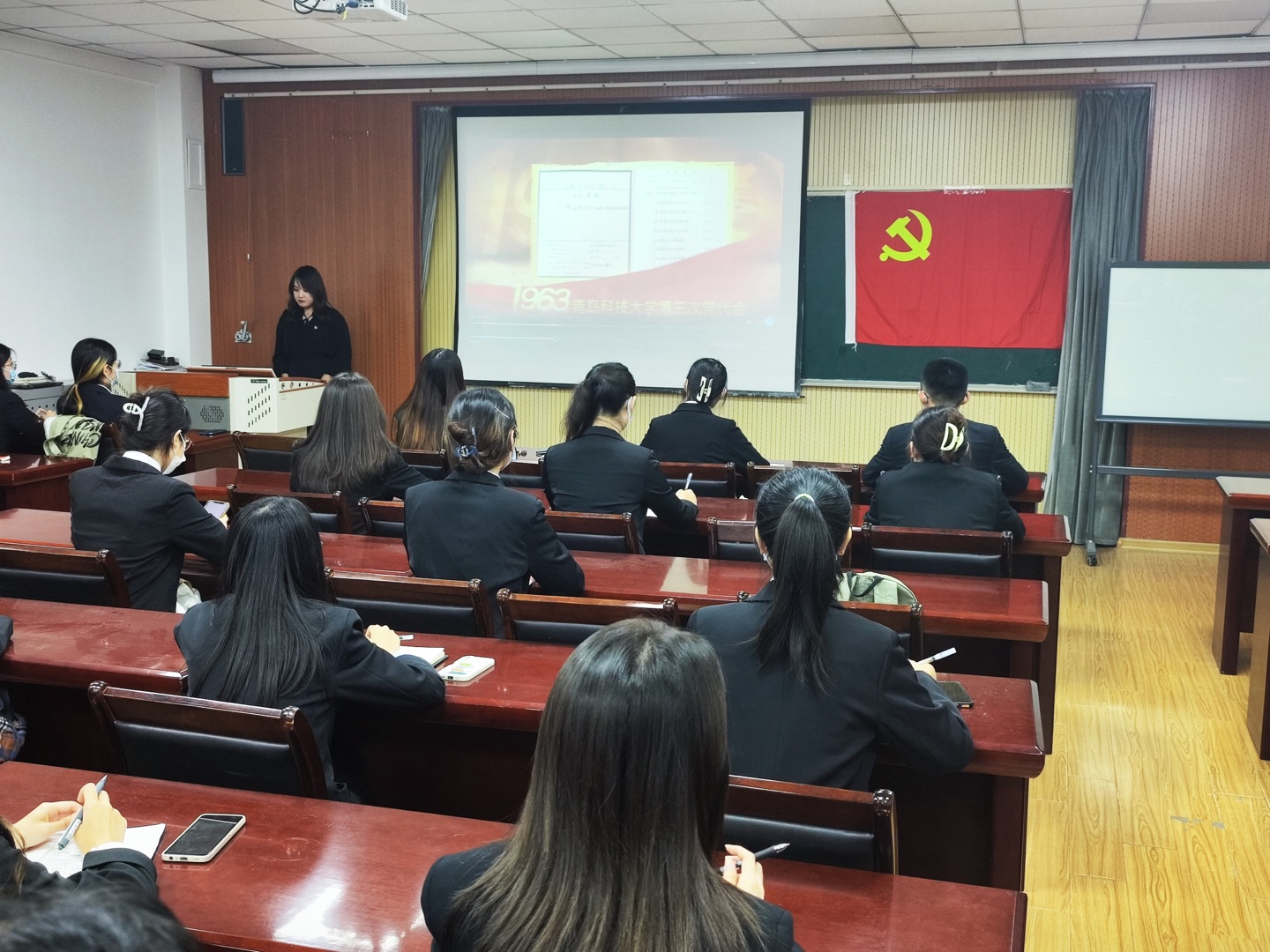 随后,全体同学做小组研讨交流,4名同学就党代会召开背景、战略目标、我的党员故事等角度进行交流分享,全体党员纷纷表示,作为青年学生党员,要树立正确的理想信念,努力提高个人的思想道德品质和科学文化素养,努力跑出当代青年的最好成绩,为把我校建设成为特色鲜明、走在前列的高水平大学而努力奋斗,共同谱写学校更加辉煌的崭新篇章!