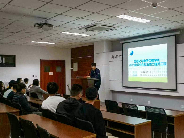为深入贯彻党的十九届五中全会中指出的“实现更加充分更高质量就业”的部署和和教育部强化就业育人工作要求,全力配合学校“十四五”期间人才培养和发展总体规划,推动大学生就业创业指导和就业帮扶工作不断深入,进一步加强校企合作,10月13日,自动化学院联合三菱电机自动化有限公司开展毕业生就业能力提升工程。三菱公司人力资源高级主任耿介,三菱公司资深高级工程师王博,自动化与电子工程学院19级辅导员郭蒙蒙、吴擎及自动化学院本科应届生参加此次活动。