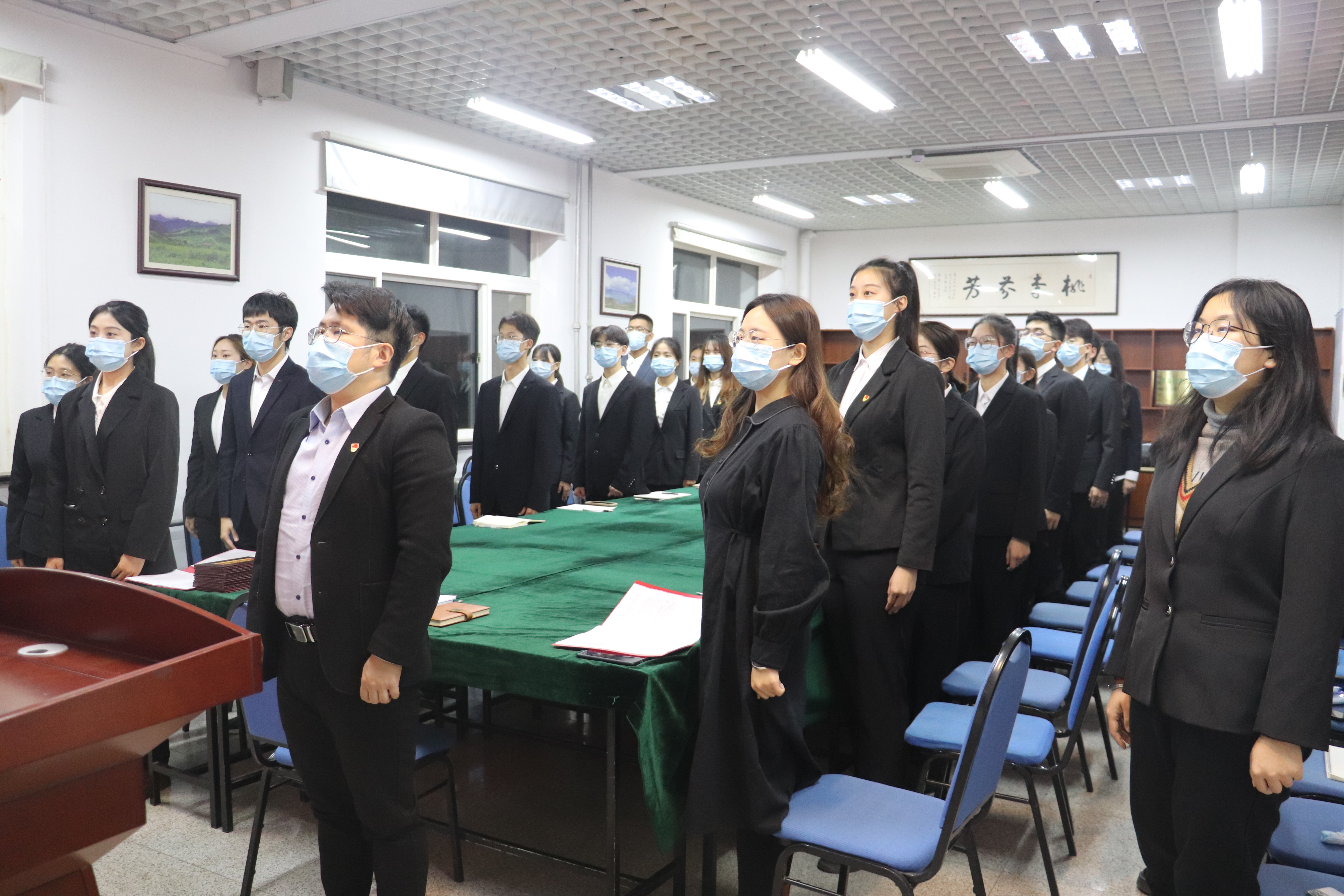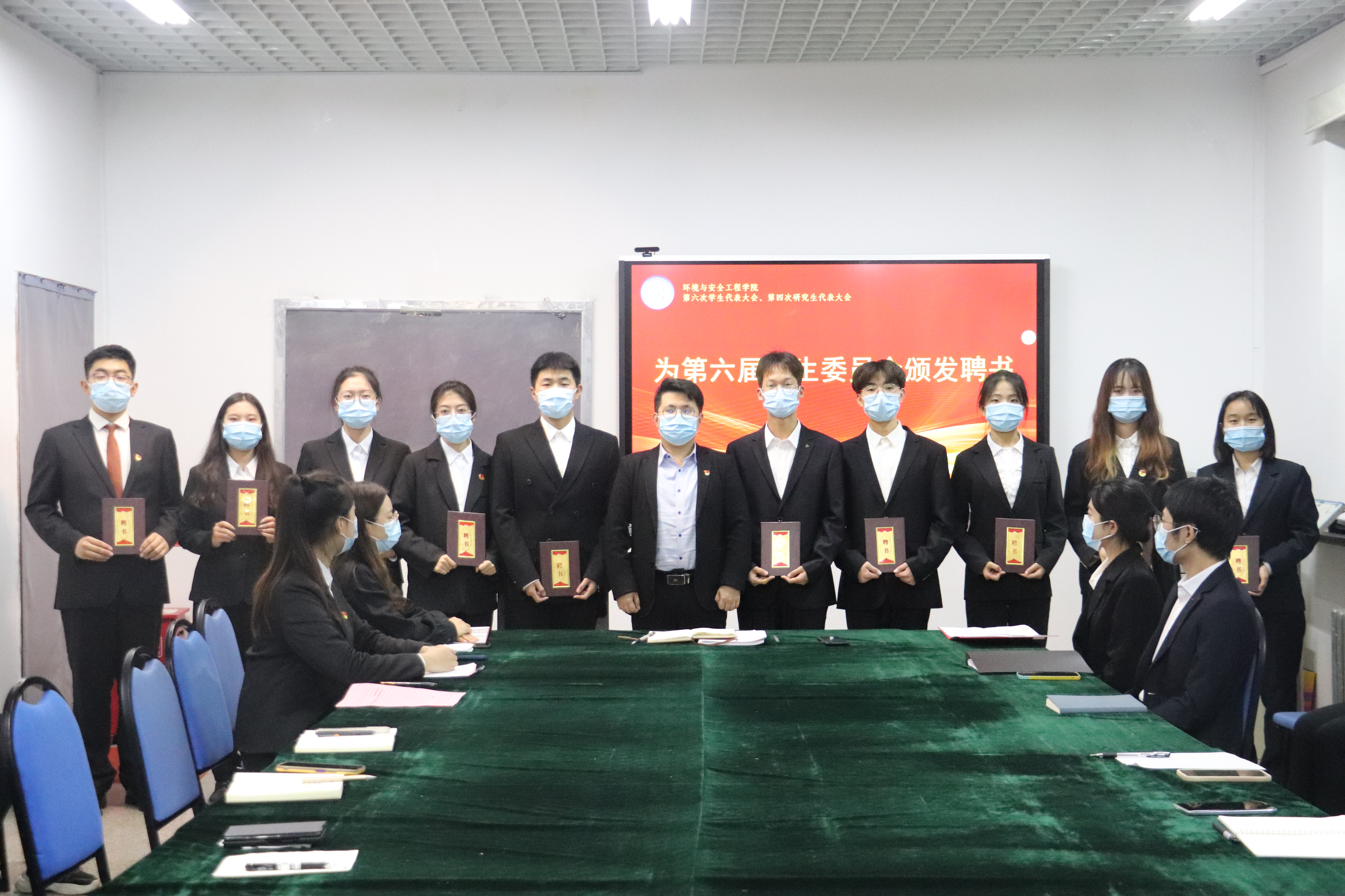 学院学工办主任兼团委书记钟硕为新一届学生会、研究生会主要学生干部颁发聘书,新一届学生会执行主席李丹、新一届研究生会执行主席宫姝丽作了表态发言和工作展望。