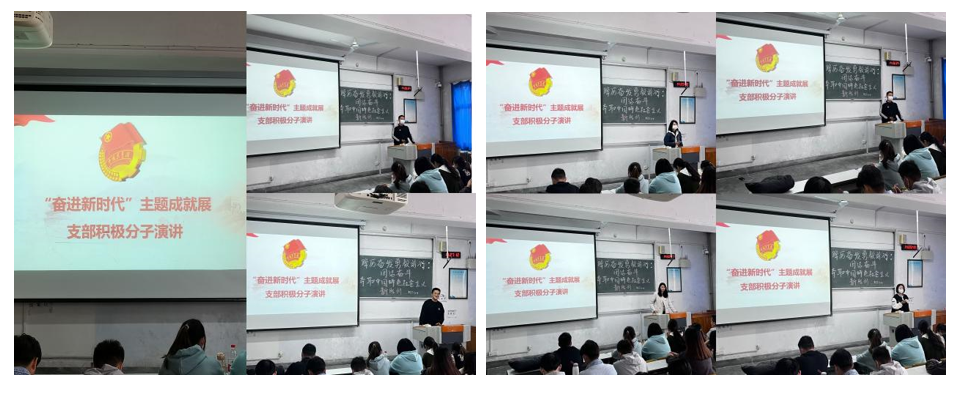 观看开幕式结束后,团支部举办了“奋进新时代”入党积极分子演讲活动,支部积极分子们纷纷上台演讲,他们表示:青年理想远大、信念坚定,是一个国家、一个民族无坚不摧的前进动力,当代青年要不断提升创新精神,把开拓创新作为一种常态,要有敢闯、敢进的精神。作为青年要有吃苦的魄力和毅力,为人生之路打下坚实的基础,今日之中国,应当是吾辈青年奋斗之中国,我们要以“今日之我胜昨日之我”之朝气,心怀党和人民的事业。最后团支书总结到:作为新时代青年,我们必将“以志为先,以新为径,以苦为食”,以青春之名,贯彻党的二十大精神,在新时代不懈奋斗,建功立业。