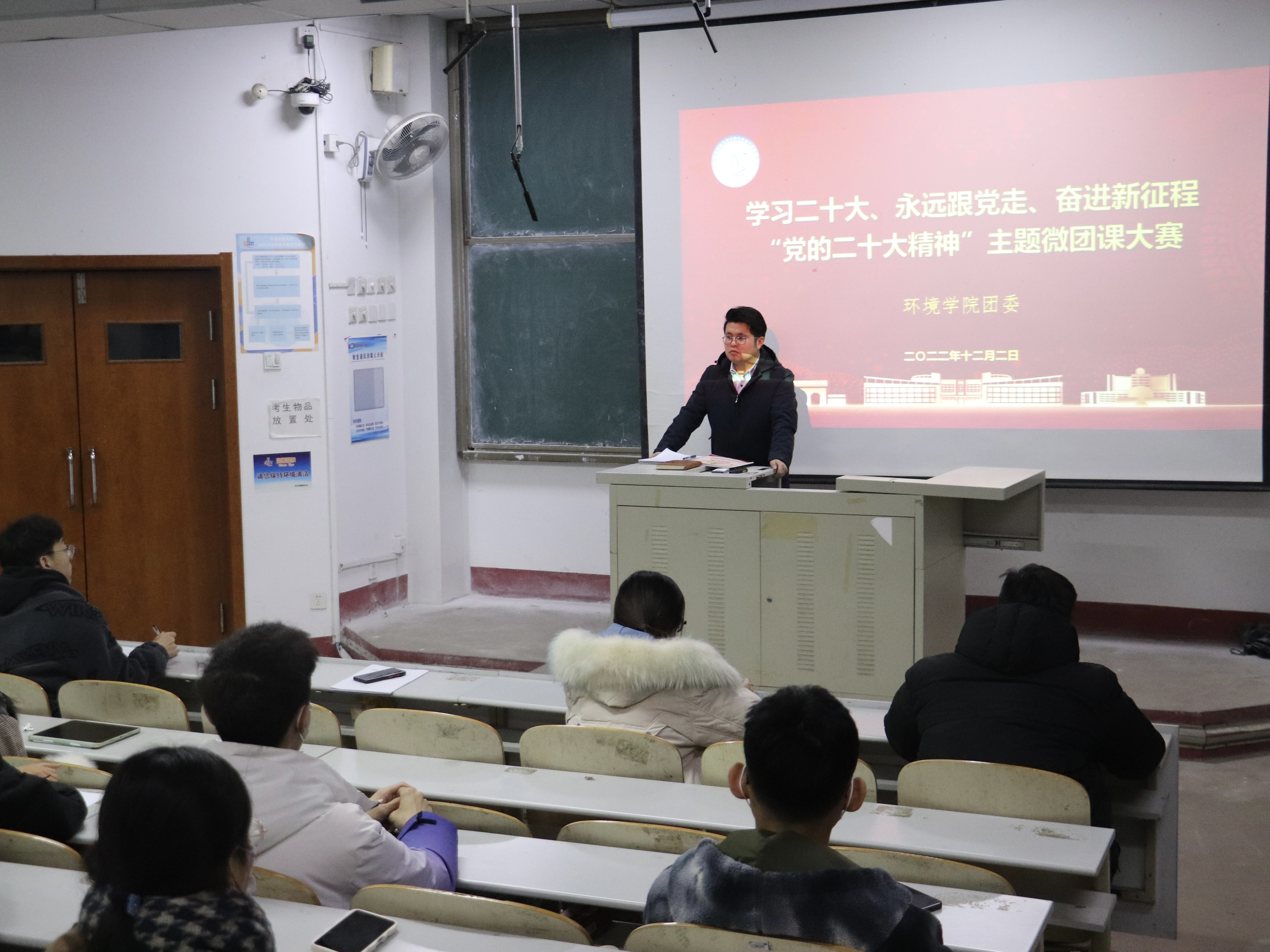 为深入学习宣传贯彻党的二十大精神,全面推进党的二十大精神宣传教育全覆盖、无死角,12月2日晚,环境学院举行团支部书记“党的二十大精神”主题微团课大赛,2020-2022级各团支部书记讲述了微团课。学院学工办、团委全体老师,各团支部支委会成员参加大赛。