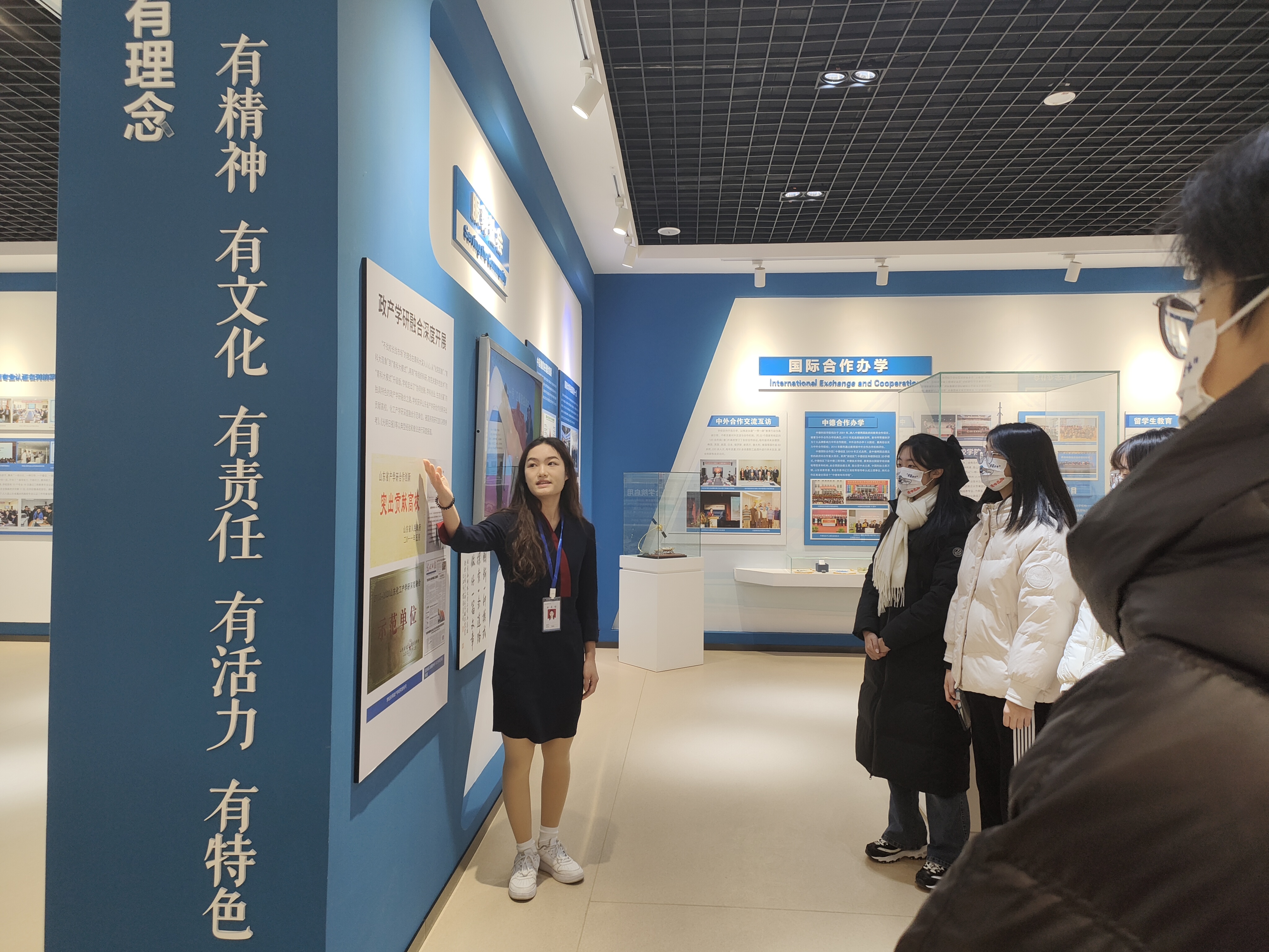校史馆讲解员详细介绍了青科大的发展,一张张照片展示了科大建设的历程。在讲解员带领下,青马学员行走在展馆里,仿佛穿梭在时空隧道中,让学员们深刻感受到学校发展之快,作为青科人的自豪感和使命感油然而生。穿越轮胎门,讲解员自豪地讲述青科大在学科建设、科技创新等9个方面取得的硕果。学员们耐心听讲,了解了科大建校以来取得的突出成就,伟大成就鼓舞人心,美好蓝图催人奋进!