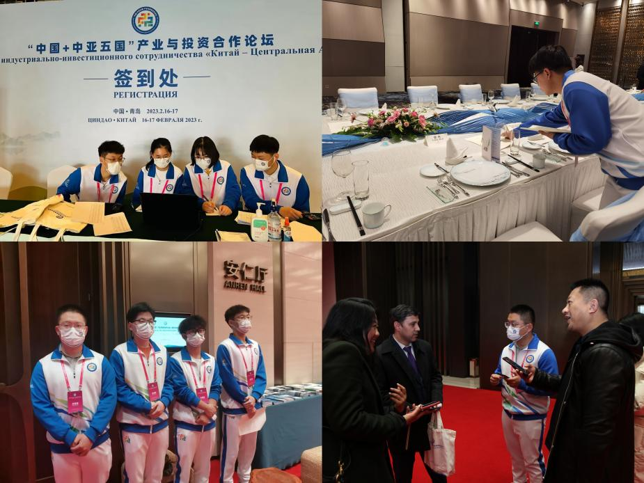 2023年2月16日至17日,“中国+中亚五国”产业与投资合作论坛在山东青岛举行。本次论坛以”互利共赢,携手推进区域经济高质量发展“为主题,由国家发展和改革委员会和山东省人民政府共同主办,共43名我校俄语系同学参加本次论坛的志愿服务活动。