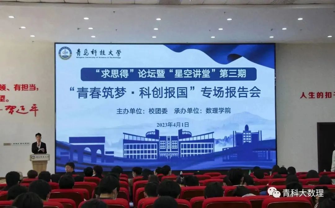 4月1日下午,“求思得”论坛之“青春筑梦·科创报国”挑战杯分享报告会暨“星空讲堂”第三期在北苑报告厅举办。此次分享报告邀请了第十三届“挑战杯”中国大学生创业计划竞赛获奖团队进行经验分享交流,数理学院团委全体老师、150余名青年学生参加了分享会。