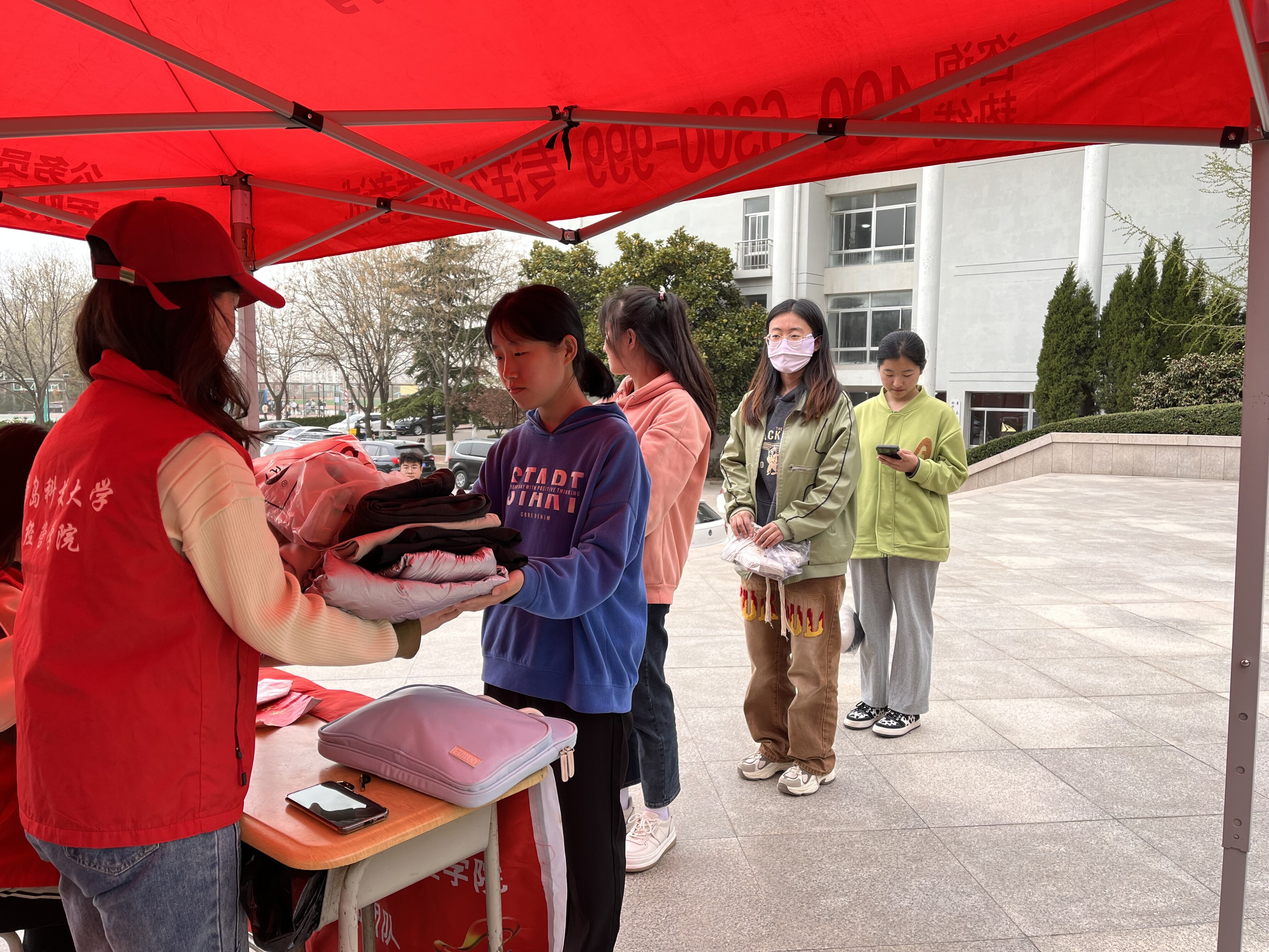 活动当天,我院学生热情参与、积极捐赠,大家将各类捐赠衣物叠放整齐,井然有序地放置在捐衣点。暖心愿成员对捐赠的衣物进行了整理、分类和登记,确保每一位捐赠者信息的准确性。爱的暖流汇聚在这片广场,一件件爱心捐赠,饱含同学们的温暖祝福,播种下一颗颗正能量的种子。
