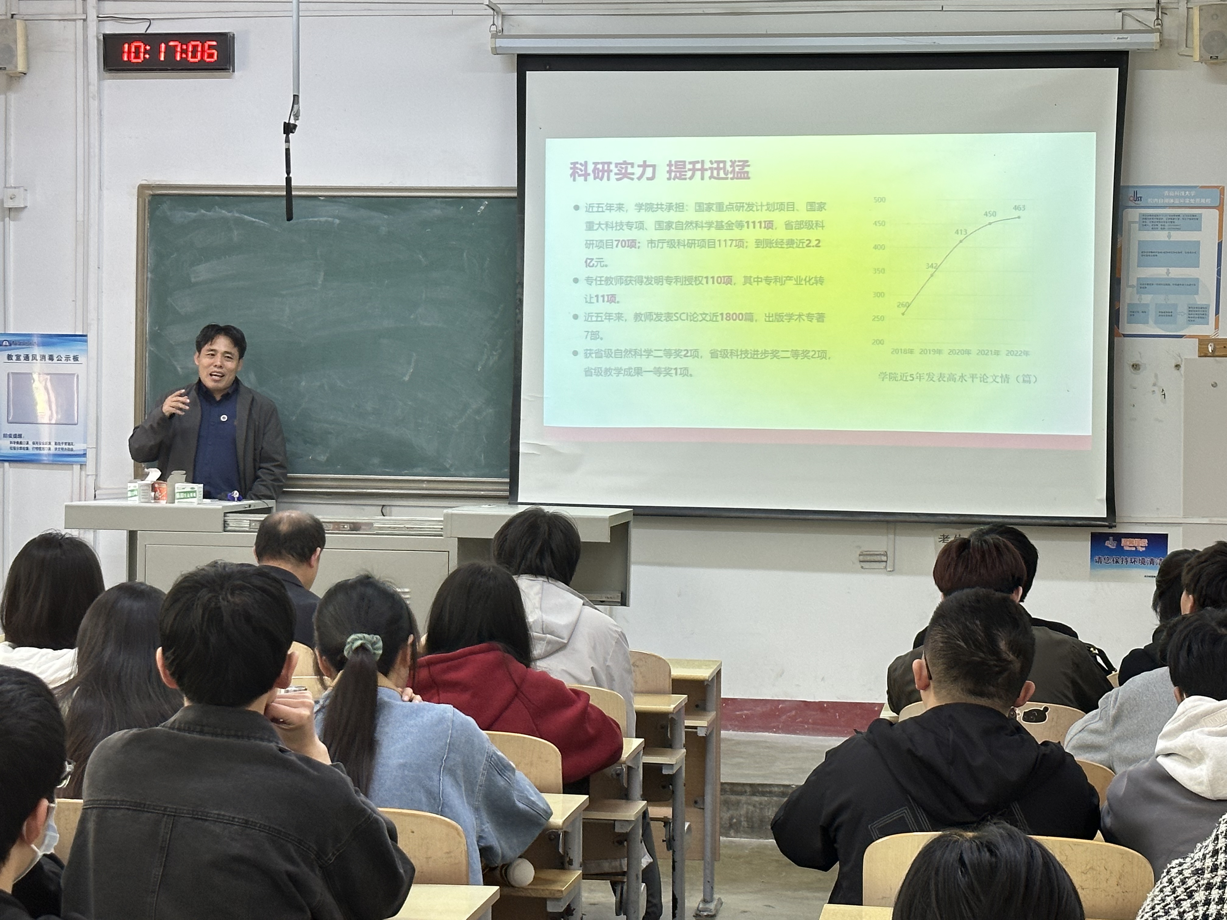 报告会围绕深圳大学化学学科介绍、招生政策宣讲和学术前沿报告三个环节展开。任祥忠详细介绍了深圳大学化学与环境工程学院的发展沿革、人才培养情况和研究生招生政策,并就同学们关心的研究生初试和复试重点进行解说。任祥忠还就其学院团队关于石墨烯及其复合材料研究、柔性可穿戴能源与器件工程技术研究、大气复合污染控制研究等方面取得的进展进行了学术交流。在交流答疑环节,深圳大学化学与环境工程学院招生部门负责人结合多年招生工作经历,紧密围绕招生政策、志愿填报、学院研究生学习、科研、实践及社团活动状况等方面为同学们答疑解惑,现场气氛热烈。